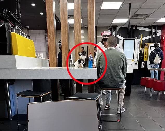 Deux clients d’un McDo ne se sont pas gênés pour installer leur chihuahua noir et blanc sur un comptoir à l’intérieur du restaurant de Melbourne en attendant leur repas.
