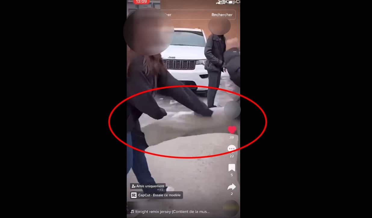 Sur la vidéo obtenue par TVA Nouvelles, on voit l’assaillante donner un coup de poing, puis un coup de pied à sa victime, qui cherche seulement à se défendre, visiblement effrayée.