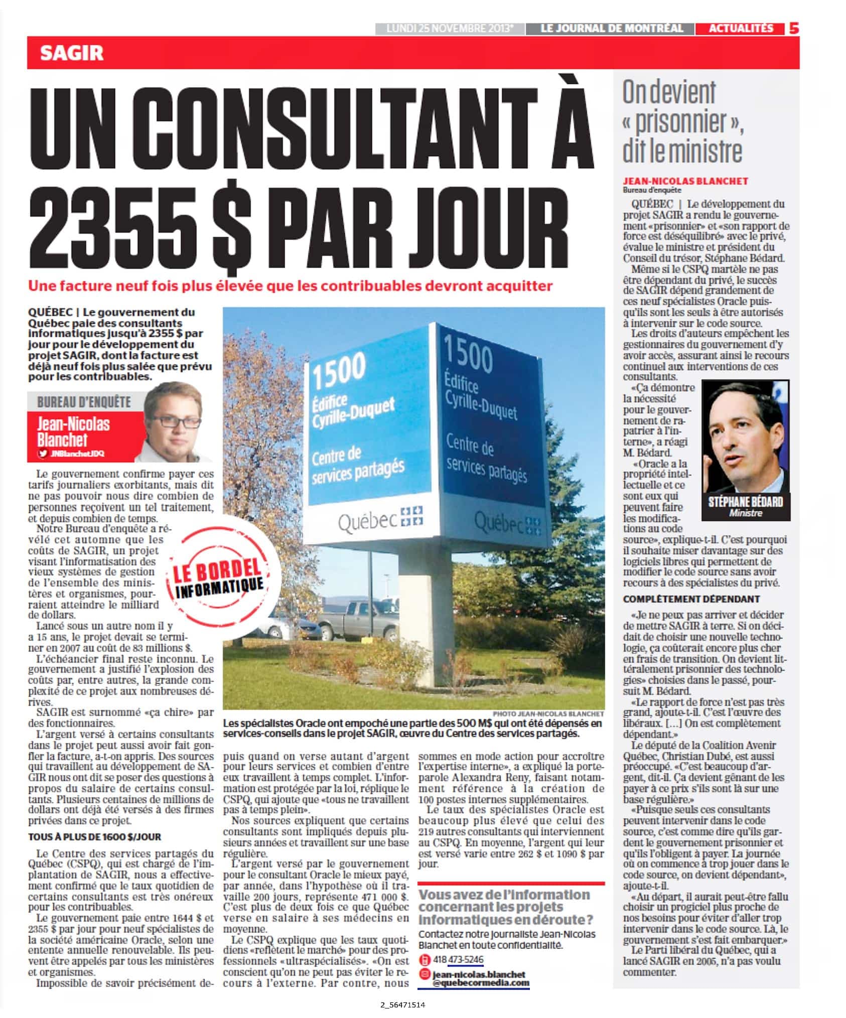 Durant cinq ans (je me suis joint à la direction par la suite), mes reportages ont conduit à l’annulation de plusieurs appels d’offres de millions de dollars, des démissions et des changements dans la gestion des technologies de l’information au gouvernement. En 2015, le gouvernement libéral avait annoncé un ménage informatique en saluant la mise au grand jour de scandales rédigés avec notre section « Bordel informatique ».