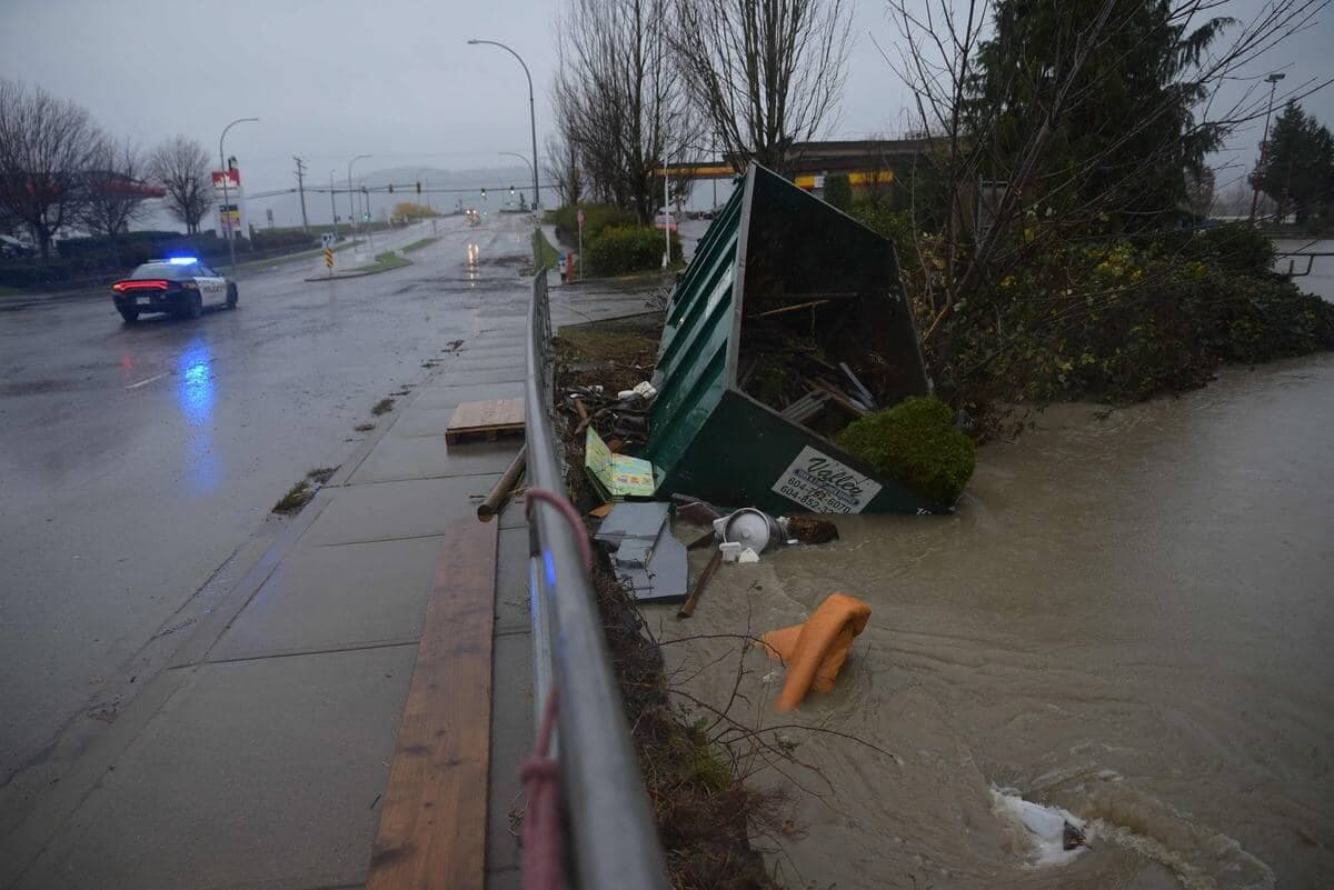 Dans le sud de la Colombie-Britannique, 24 communautés ont reçu plus de 100 mm de pluie entre le 13 et le 15 novembre. La ville de Hope a mené le groupe avec des précipitations de 252 mm durant cette période, surpassant son ancien record par 139 mm. Plus de 17 000 personnes dans la province ont été évacuées. La ville de Vancouver a été durement touchée, perdant ses liaisons routières et ferroviaires avec le reste du pays.