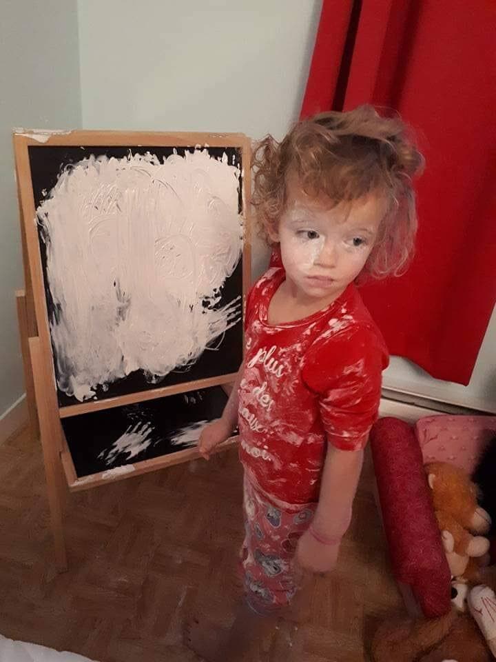 « Élie qui fait un beau tableau avec la pâte d'huile »