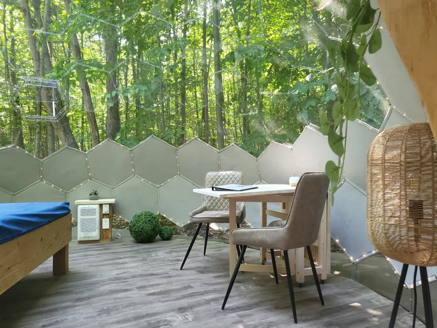 Vivez une expérience romantique unique dans un dôme à la belle étoile. Détendez-vous dans votre spa privé 4 saisons entouré d'une forêt de conifères et de chants d'oiseaux.
