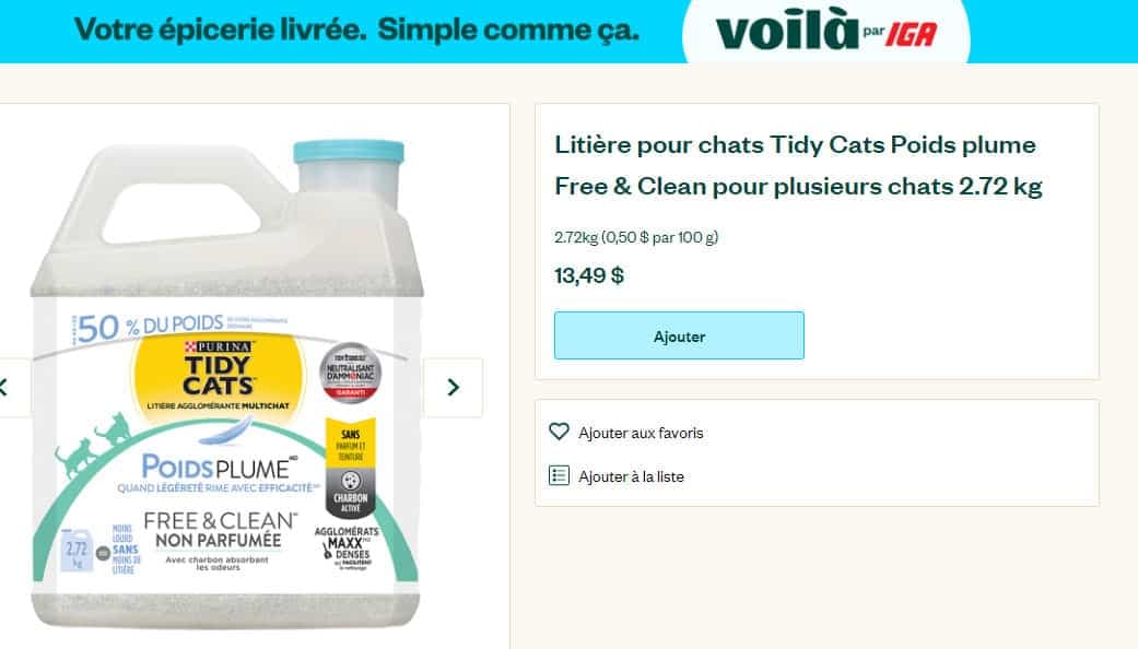 Prix au Québec pour 2,72 kg de Tidy Cats