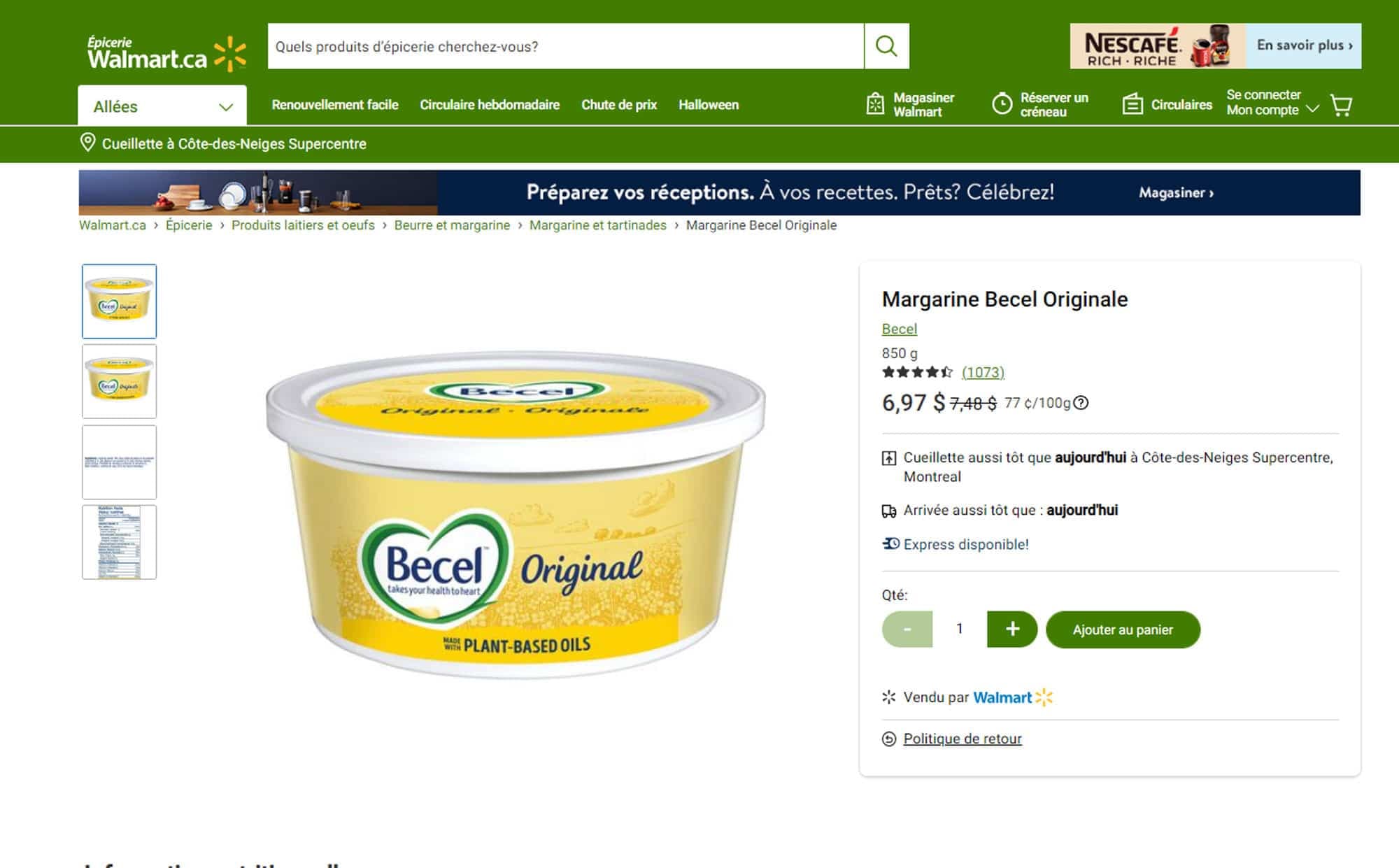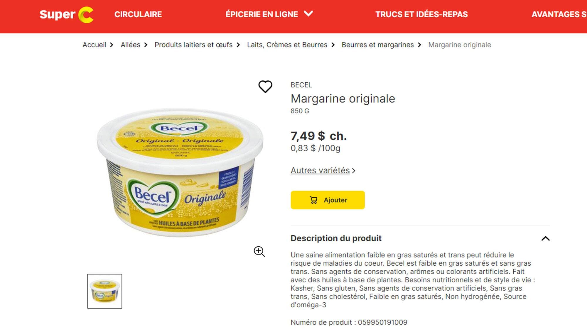 Prix au Québec pour la margarine Becel de 850 gr