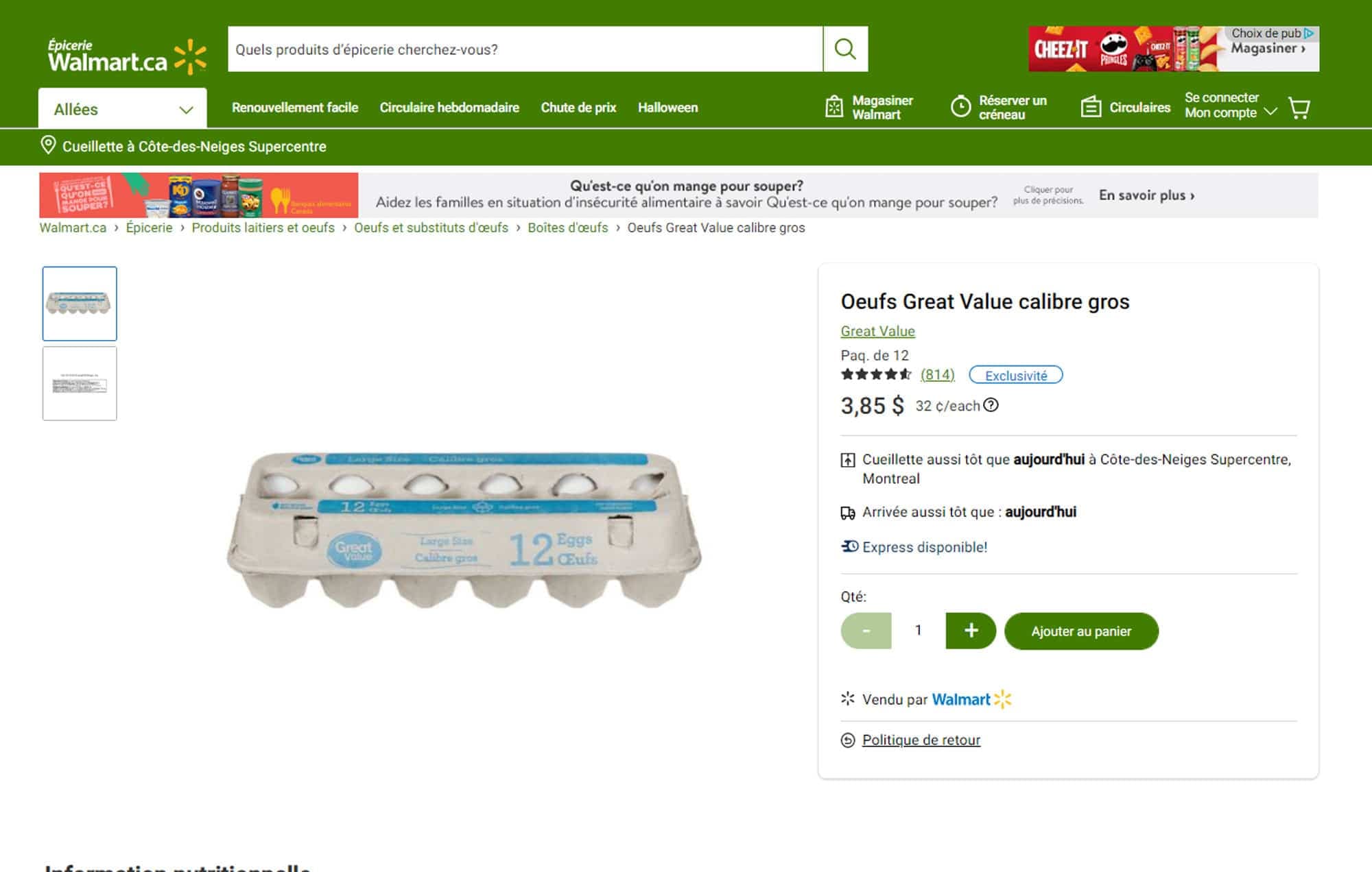 Maxi: 6,29$ pour 18 oeufs (en spécial à 3,77$)
