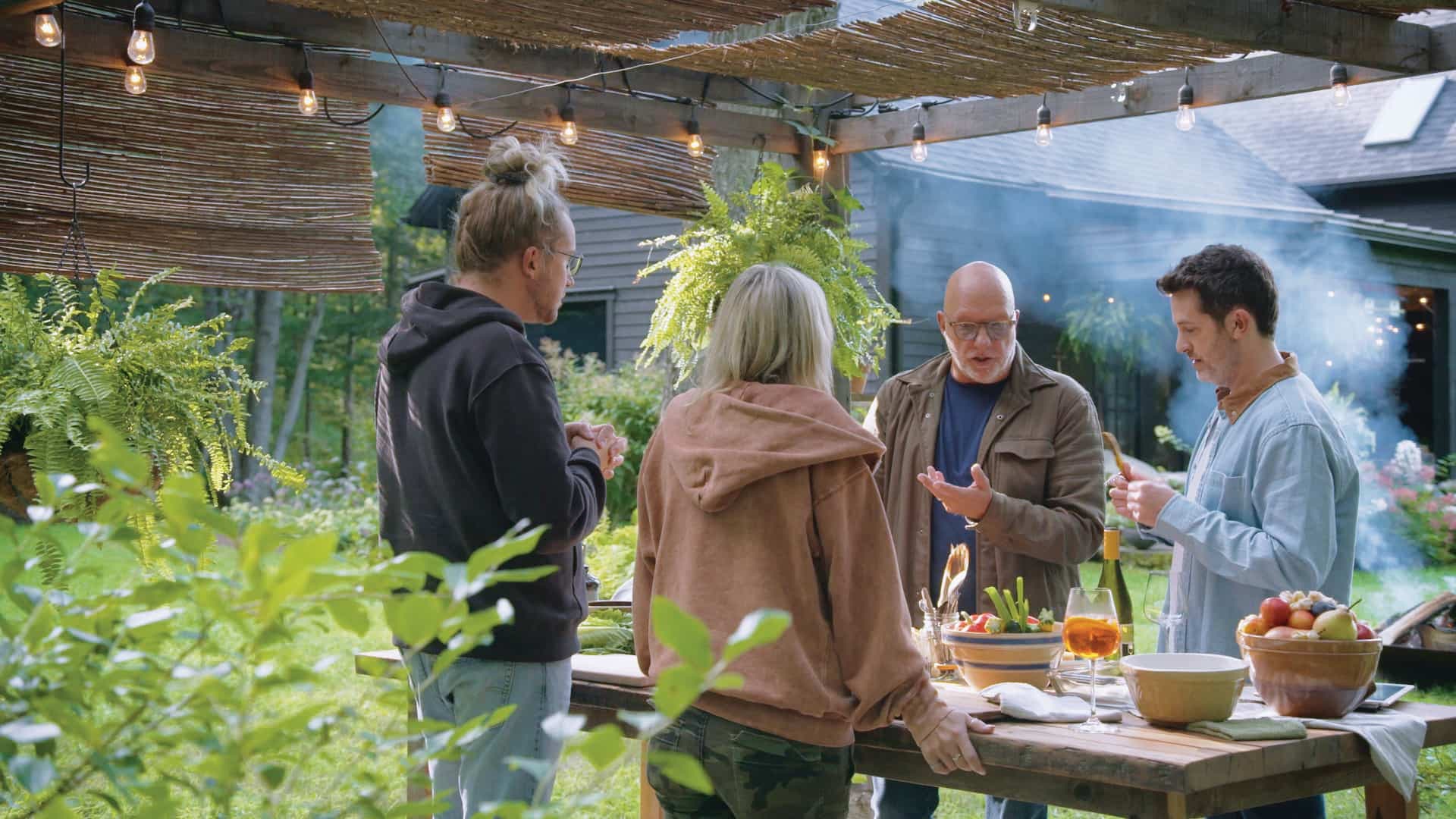 Nous avons vécu une fin de soirée déjantée! Avec nos invités, nous nous sommes rassemblés autour du feu de camp. Denis grattouille la guitare. J’avais envie de l’entendre chanter et jouer, mais il était extrêmement nerveux. Quand il était jeune, son père lui demandait toujours de jouer une petite chanson, et c’était la pire chose au monde pour lui, car il était timide. Il a revécu cette situation, en quelque sorte, avec nous. Il a finalement joué ses deux classiques: Si fragile, de Luc De Larochellière, et Shallow, de Lady Gaga et Bradley Cooper. Comme personne ne chantait sur la même note, ç’a été un grand cafouillage digne de La vraie nature! (rires)