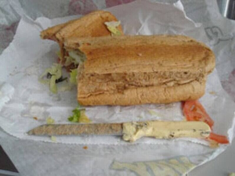 Un homme a trouvé un couteau dans son sandwich 12 pouces de chez Subway. Il a intenté une poursuite pour la somme de 1 M$, mais s’est finalement entendu avec l’entreprise de restauration rapide pour 20 000 $.