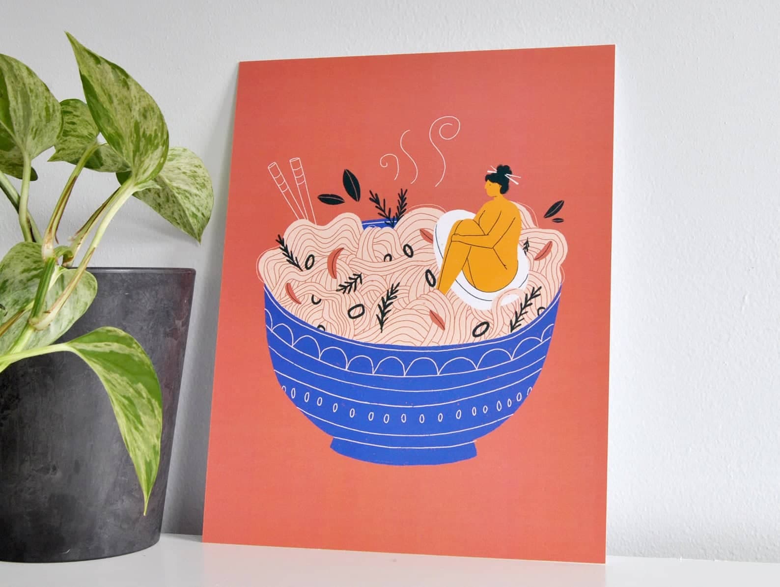Cette artiste montréalaise fait des illustrations qui reflètent son amour pour les chats, les plantes et la nourriture! Si vous avez les mêmes passions qu’elle, vous serez conquis par ses produits sur sa boutique Etsy.
