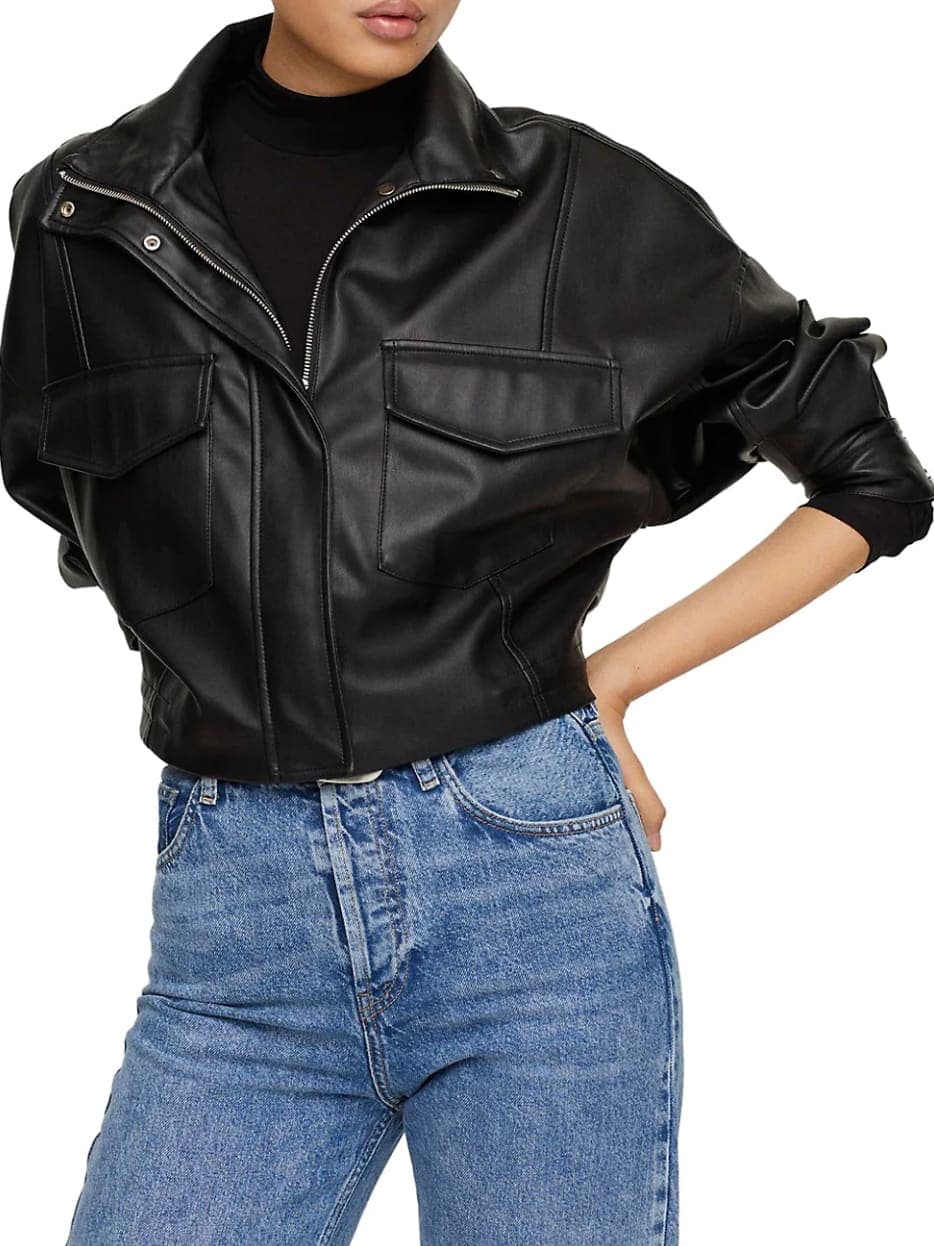 4. Manteau en faux cuir écourté Mango chez La Baie - 120 $