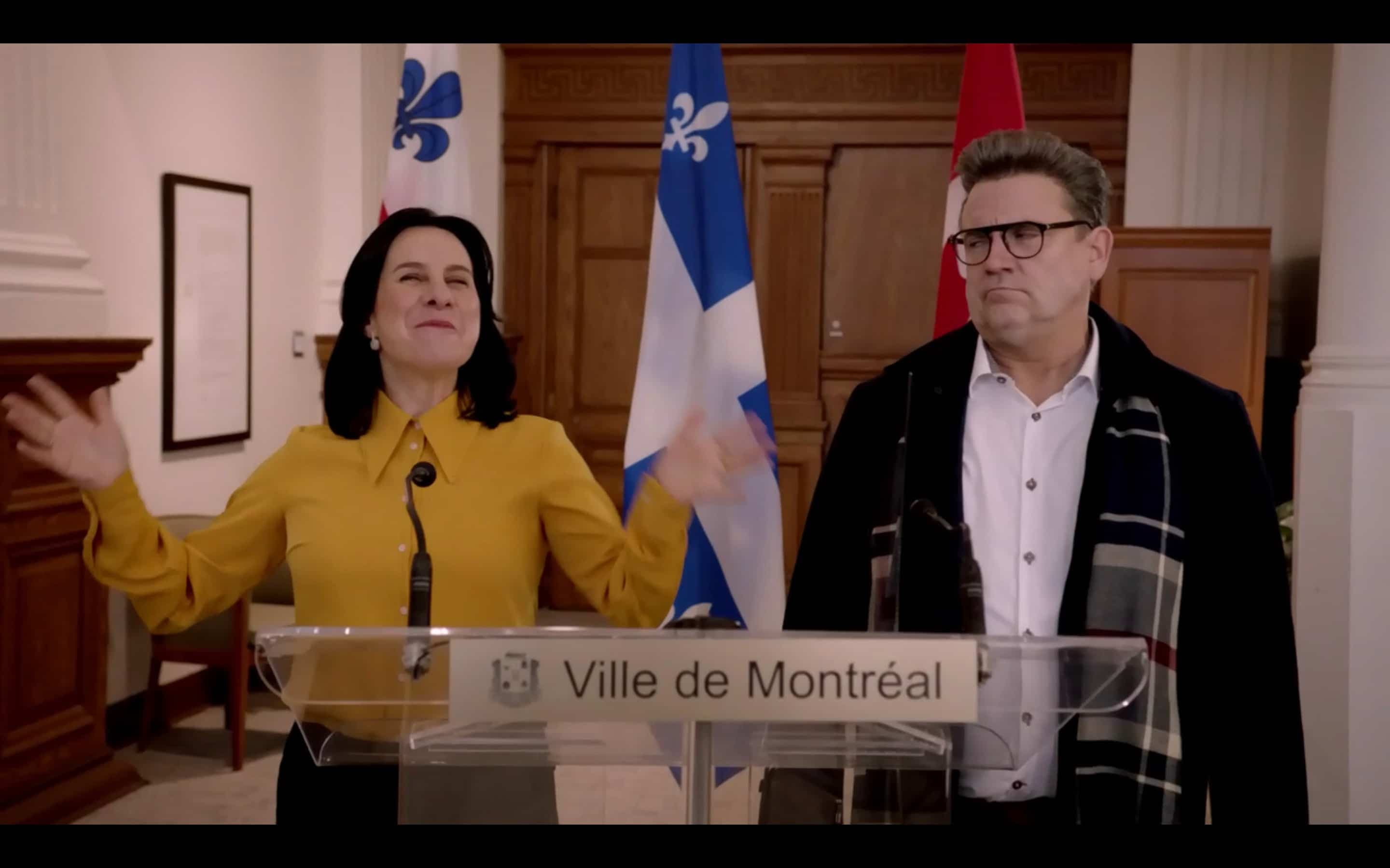 Valérie Plante (c’est particulièrement drôle de la voir, en vrai, à côté de quelqu’un qui joue Denis Coderre)