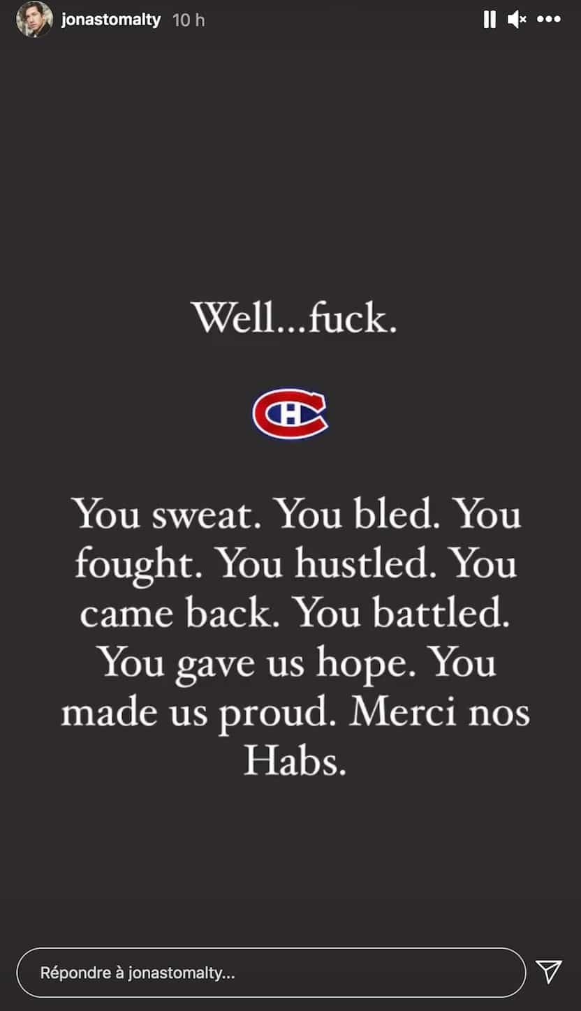 Ça fait mal. Mais merci aux @CanadiensMTL de nous avoir fait vibrer ces dernières semaines. La suite va être belle!