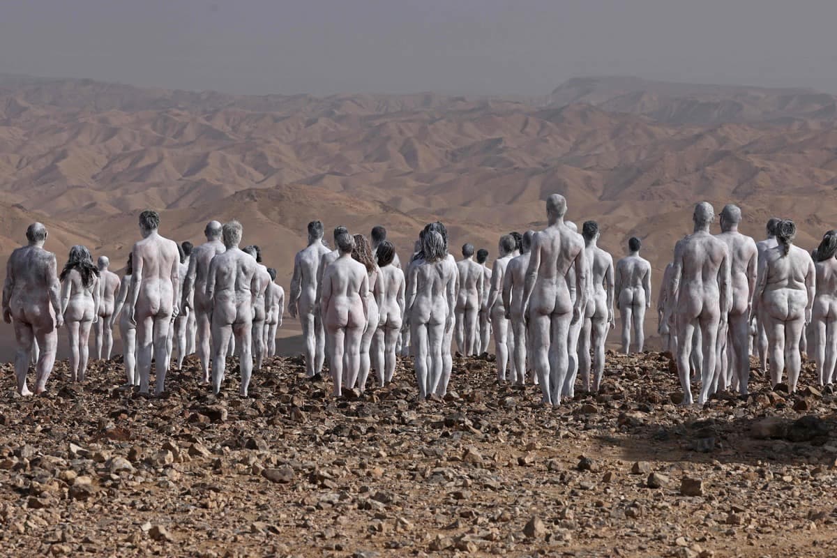 C'est le projet du photographe américain Spencer Tunick, qui a l'habitude des séances photo du genre. Il a réuni toutes ces personnes en Israël, près de la mer Morte, laquelle est menacée d’assèchement. Il avait été invité par le ministère du Tourisme israélien et la Ville d’Arad, où s’est déroulée la séance.