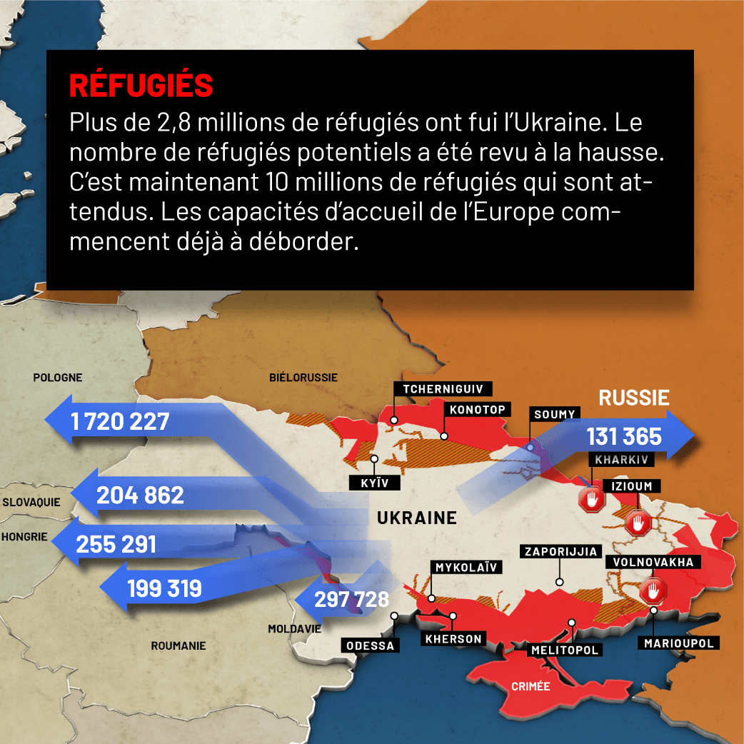 Plus de 3 millions de réfugiés ukrainiens ont quitté le pays depuis le début du conflit, selon l'Organisation internationale pour les migrants.