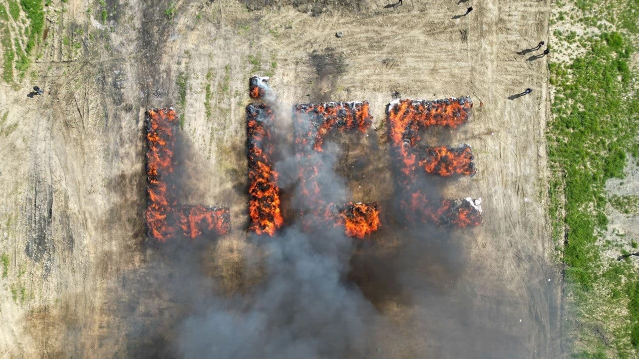 L'opération de destruction a été menée à proximité du centre-ville par la gendarmerie locale, qui avait fait une belle mise en scène où le mot «Lice» était formé par des sacs remplis de drogue saisie.