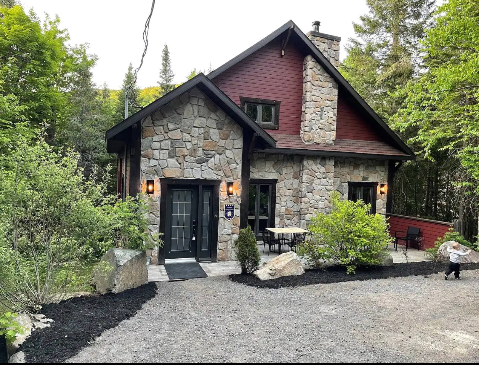 Sur le bord de la rivière du Diable, ce chalet promet un environnement paisible, même s’il est près de toutes les commodités. On y trouve une plage de sable et de nombreuses activités extérieures sont offertes directement sur place.