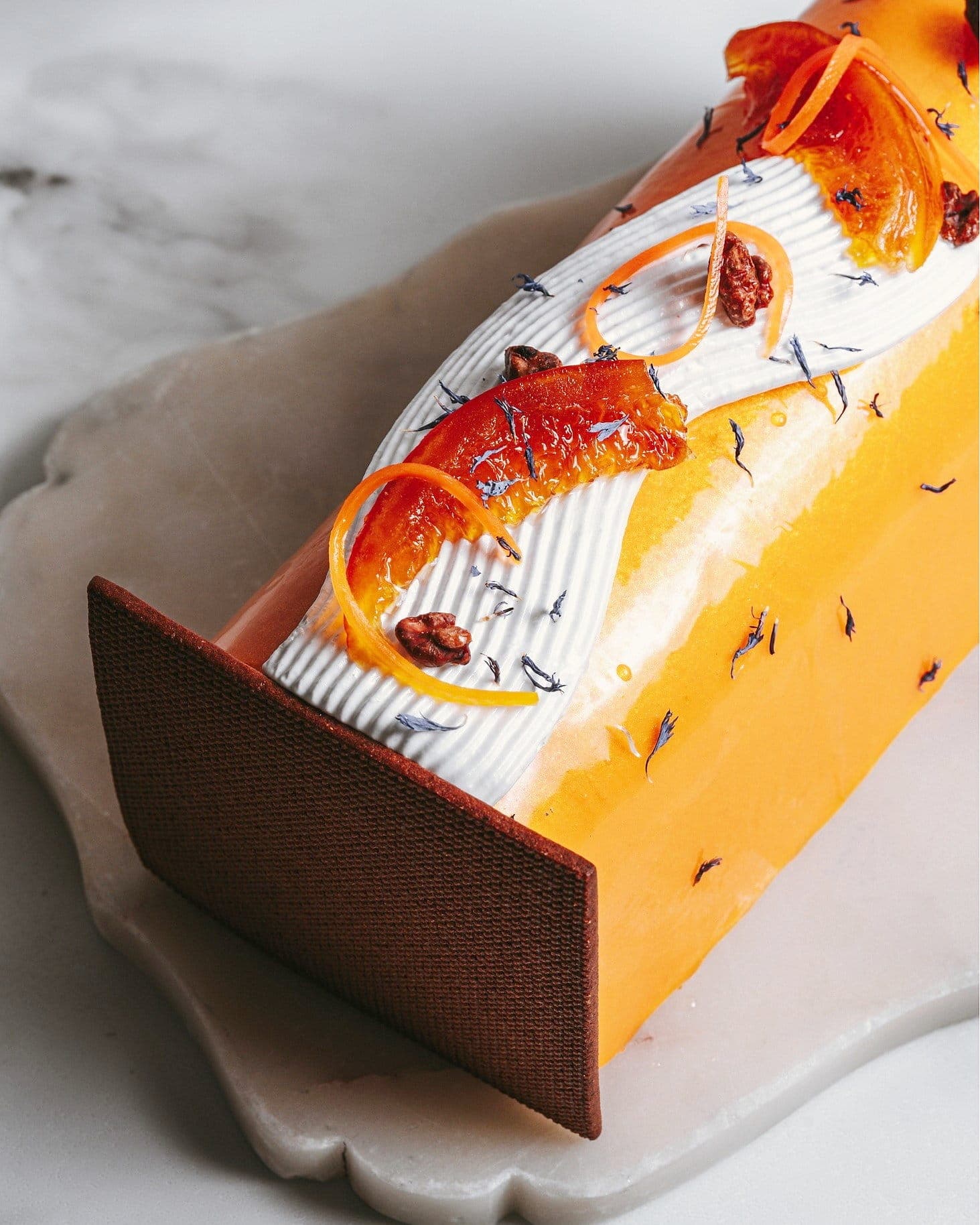 Le chef pâtissier Aurélien Kerzerho, de la Pâtisserie Mélilot, a une touche très propre à lui. En alliant élégance, précision et une pointe d’audace, il conçoit des créations aussi singulières qu’artistiques. Son amour pour les infusions d’herbes et d’épices boréales s’exprime pleinement dans son menu des Fêtes, où le chocolat noir se marie avec caramel et thé du Labrador, la framboise avec la rose et le poivre rose, le chocolat au lait avec lactaire odeur d’érable et thé des bois, ou encore le cassis avec mélilot et chocolat Komuntu, trio aromatique que l’on retrouve à l’intérieur de la bûche Collection.