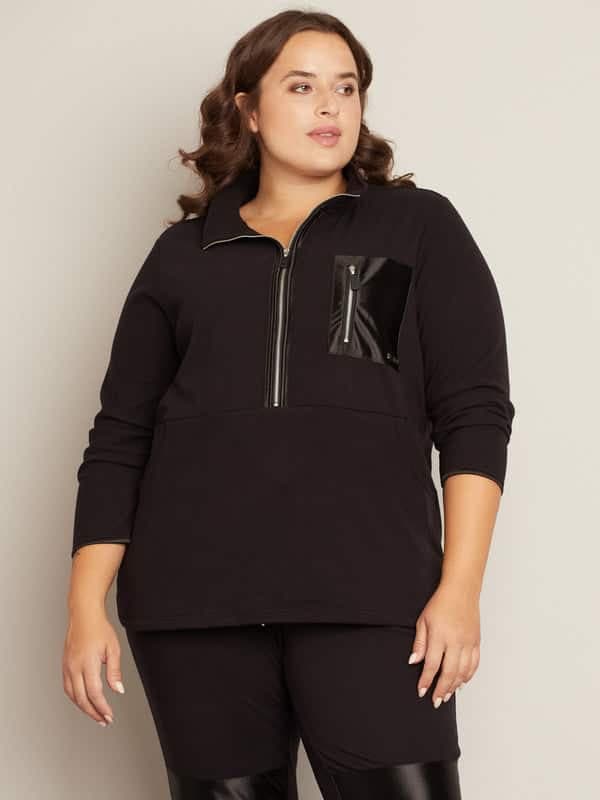Ce chandail à col montant et à demi-fermeture éclair est définitivement une pièce tendance à avoir dans votre garde-robe cet hiver. Avec sa coupe ample et sa jolie poche satinée pratique, il vous suivra dans toutes vos activités, que vous ayez envie de bouger ou de relaxer.