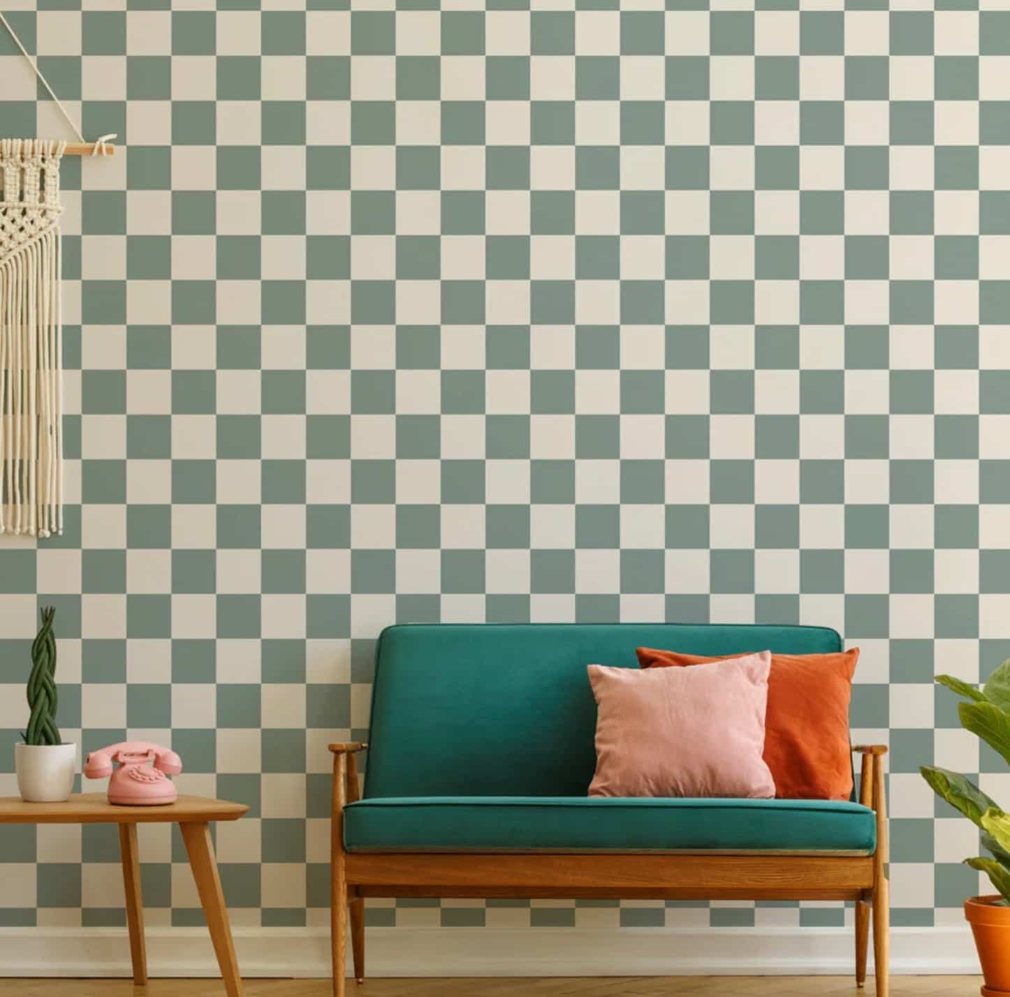 Ce papier peint serait parfait dans une chambre d’enfant ou encore une salle de jeu. Il ajoute une touche ludique toute douce.
