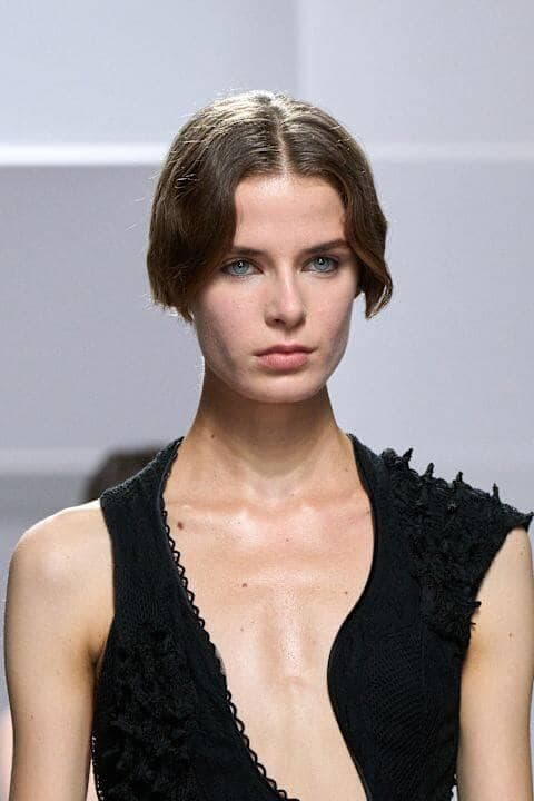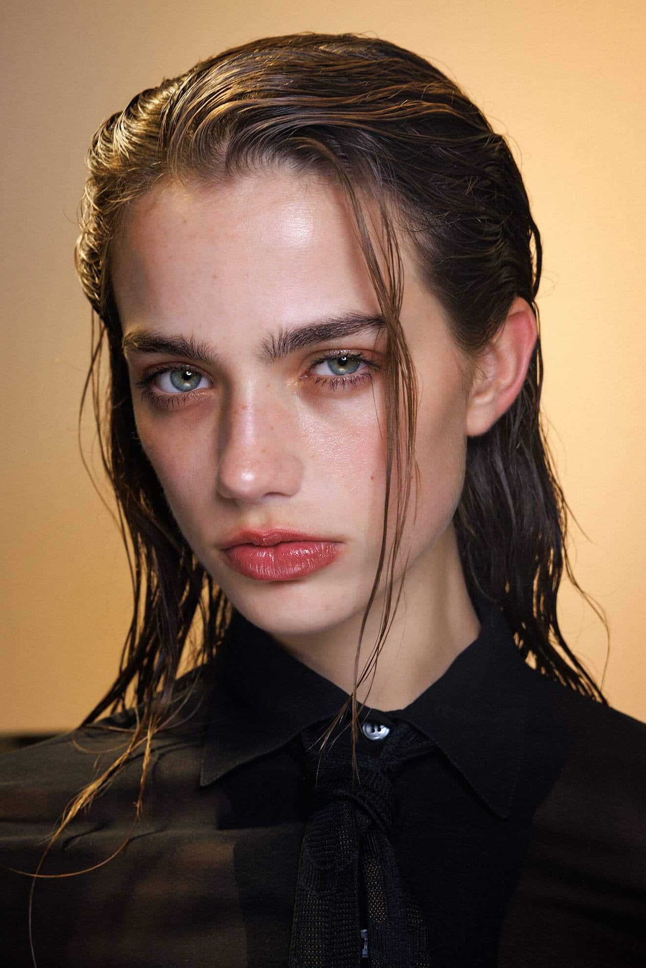 Les yeux complètement nus, ou presque, s’inscrivent dans la tendance du quiet luxury. Contrairement à ce qu’on pourrait croire, ce look minimaliste permet d’accentuer le regard. Pour reproduire cette esthétique épurée, les maquilleurs choisissent des ombres à paupières claires, très similaires au teint de la peau de leur mannequin... ou n’en utilisent tout simplement pas! Les cils sont définis à l’aide d’une simple brosse ou d’un gel, tout comme les sourcils qui sont parfois décolorés pour se fondre à la couleur du visage.