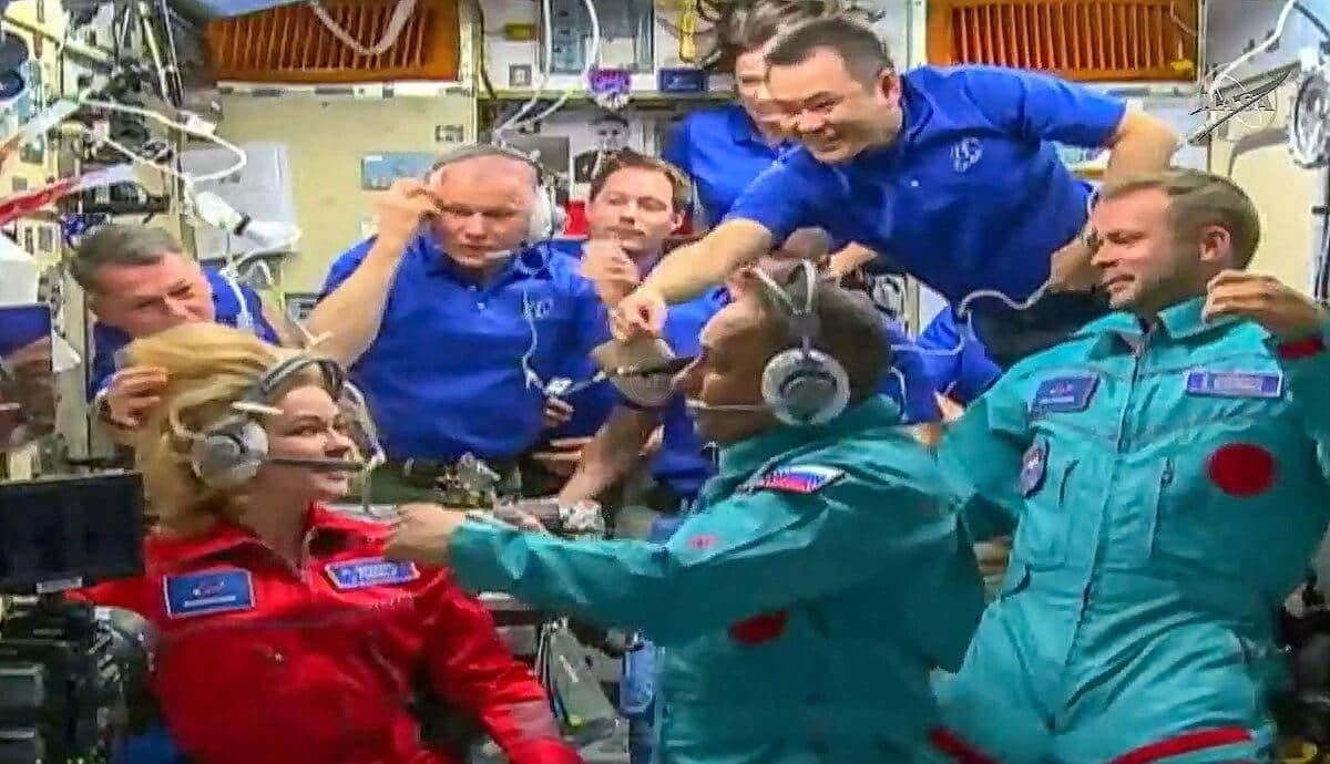 Arborant de larges sourires, l’actrice Ioulia Peressild, le réalisateur Klim Chipenko et le cosmonaute chevronné Anton Chkaplerov sont montés à bord de la station orbitale six heures après avoir quitté la Terre, selon les images diffusées par l’Agence spatiale russe (Roscosmos).