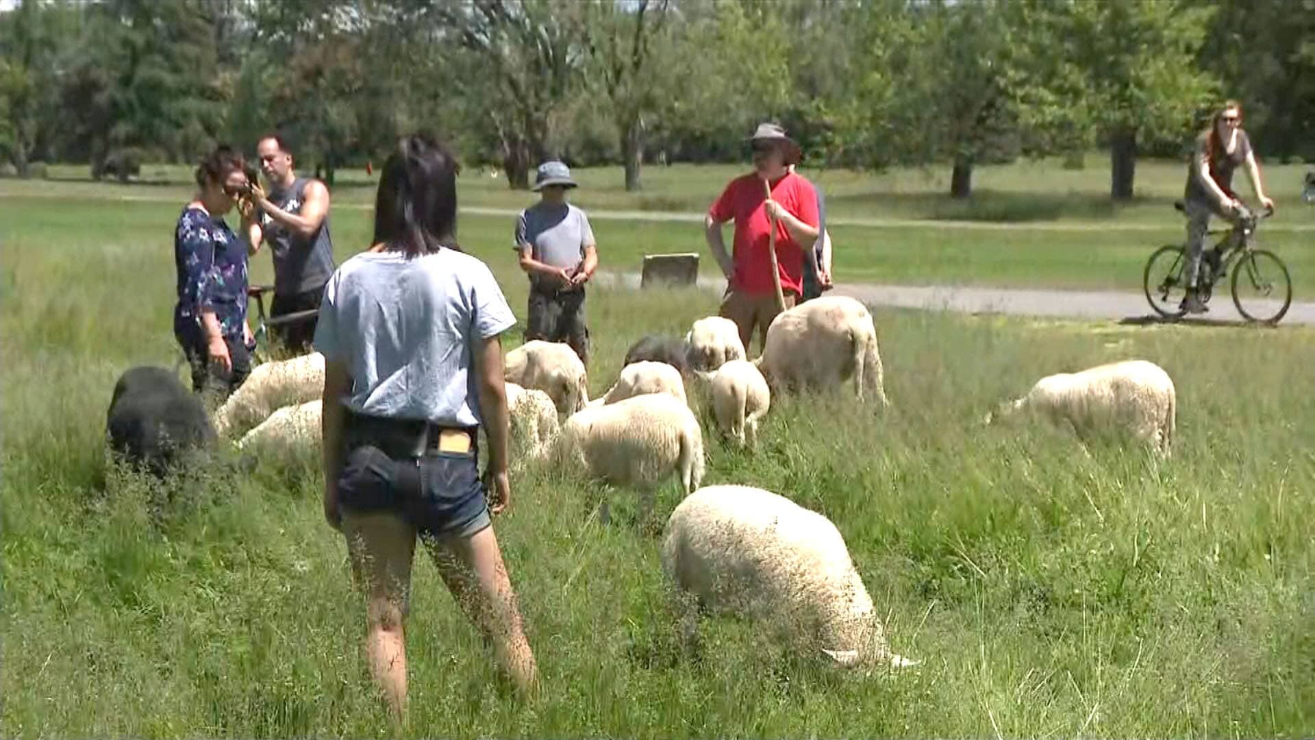 Seize moutons sont arrivés samedi au parc Maisonneuve, dans l’arrondissement de Rosement-La Petite-Patrie, pour brouter de l’herbe, une solution astucieuse pour tondre la pelouse tout en restant écologique.