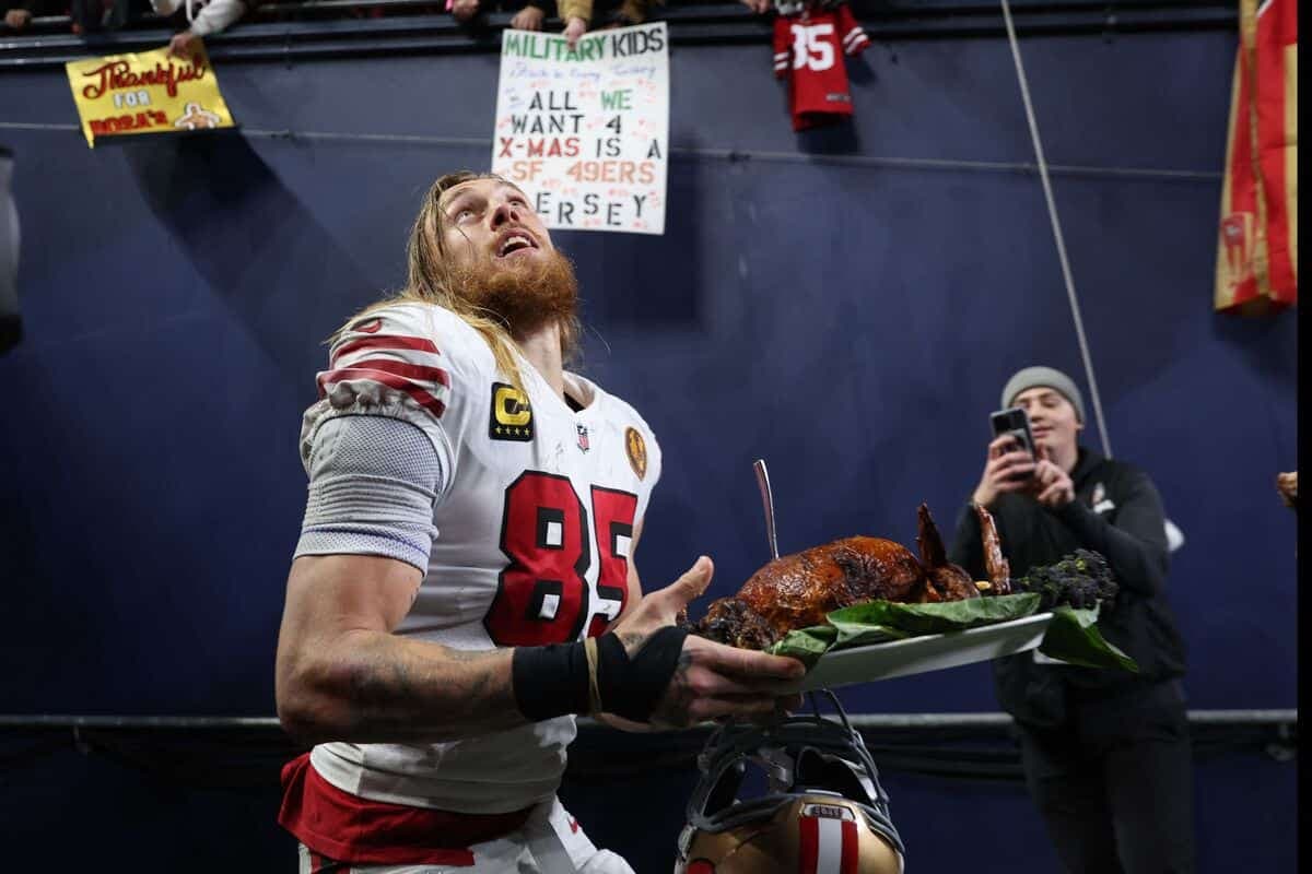 La folie de la journée de l’Action de grâce américaine s’est emparée de la NFL jeudi soir et le joueur des 49ers de San Francisco George Kittle n’avait d’yeux que pour la dinde.