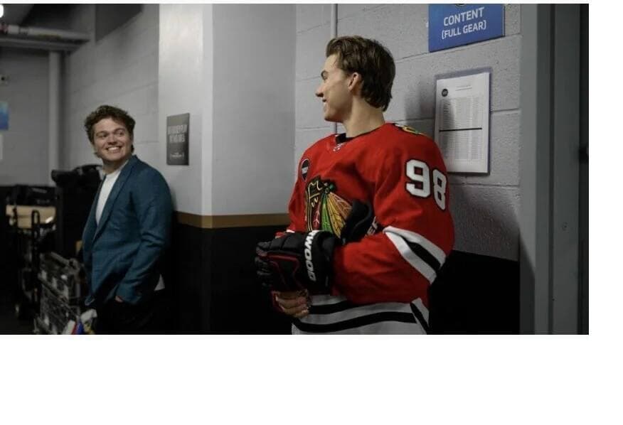 C’est le franc-tireur du Canadien de Montréal qui est allé à la rencontre de la nouvelle étoile des Blackhawks de Chicago dans les coulisses. Caufield a détendu l’atmosphère en blaguant à propos de la longueur du bâton de Bedard.