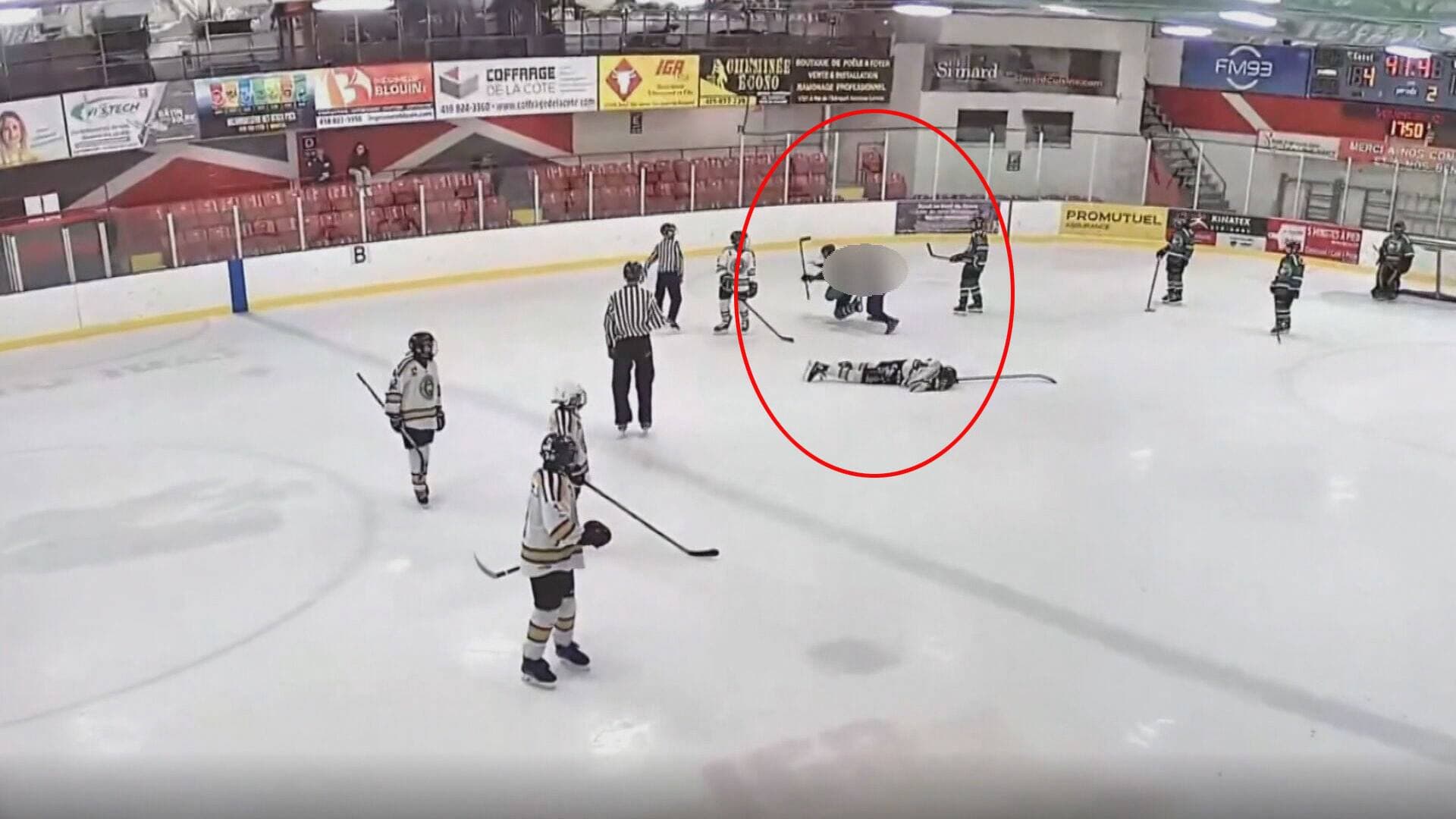 Un entraîneur de hockey mineur a quitté le banc pour se diriger sur la glace afin d’agresser un jeune joueur qui venait d’en plaquer un autre, lors d’un match disputé dimanche soir dans un aréna de Côte-de-Beaupré, près de Québec.