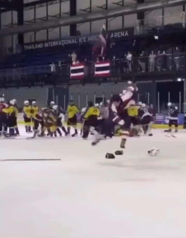 Une rencontre d’un tournoi sur invitation entre la Thaïlande et la formation de Hong Kong des moins de 18 ans a été le théâtre d’une scène inusitée de violence qui a eu lieu jeudi au Thailand International Ice Hockey Arena de Bangkok.
