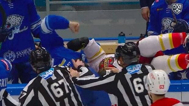 Il est assez rare de voir une bagarre se terminer au banc d’une équipe. Encore moins dans la KHL!