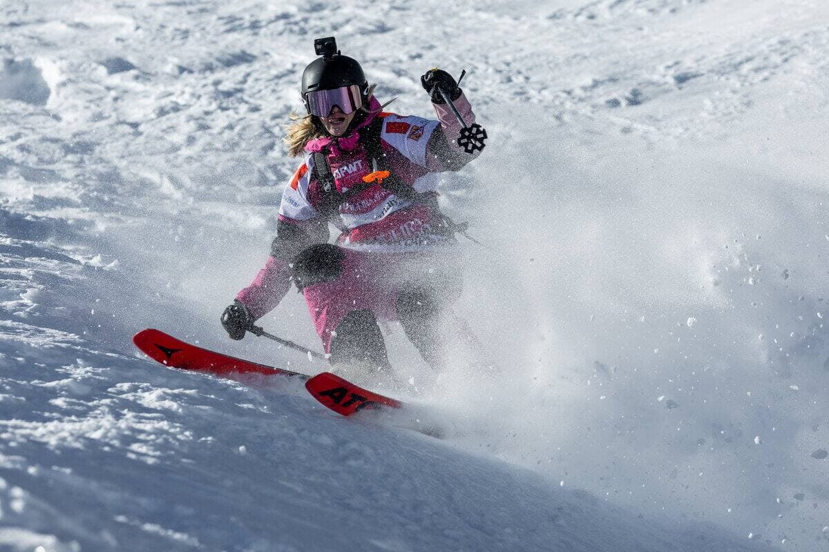 À elle seule, la pente que la skieuse dévale au départ donne des frissons aux non-initiés... et probablement même aux skieurs plus expérimentés!