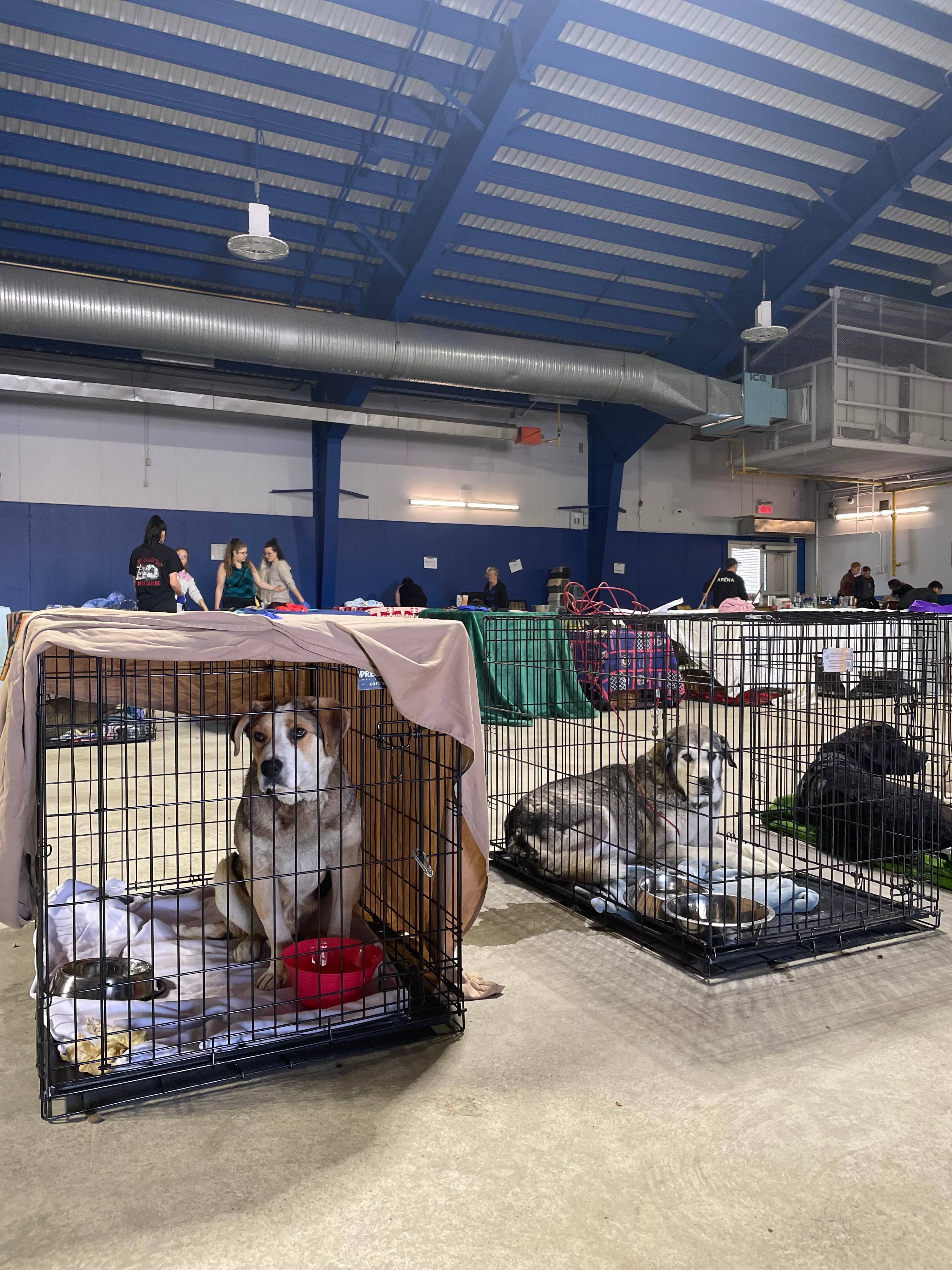 La centaine de chats et de chiens qui l’entourent mardi viennent du Lac-Simon et de Lebel-sur-Quévillon, deux des municipalités les plus touchées par les incendies au Québec. Son organisation a dû ouvrir en quelques heures ce refuge d’urgence à l’aréna Kiwanis.