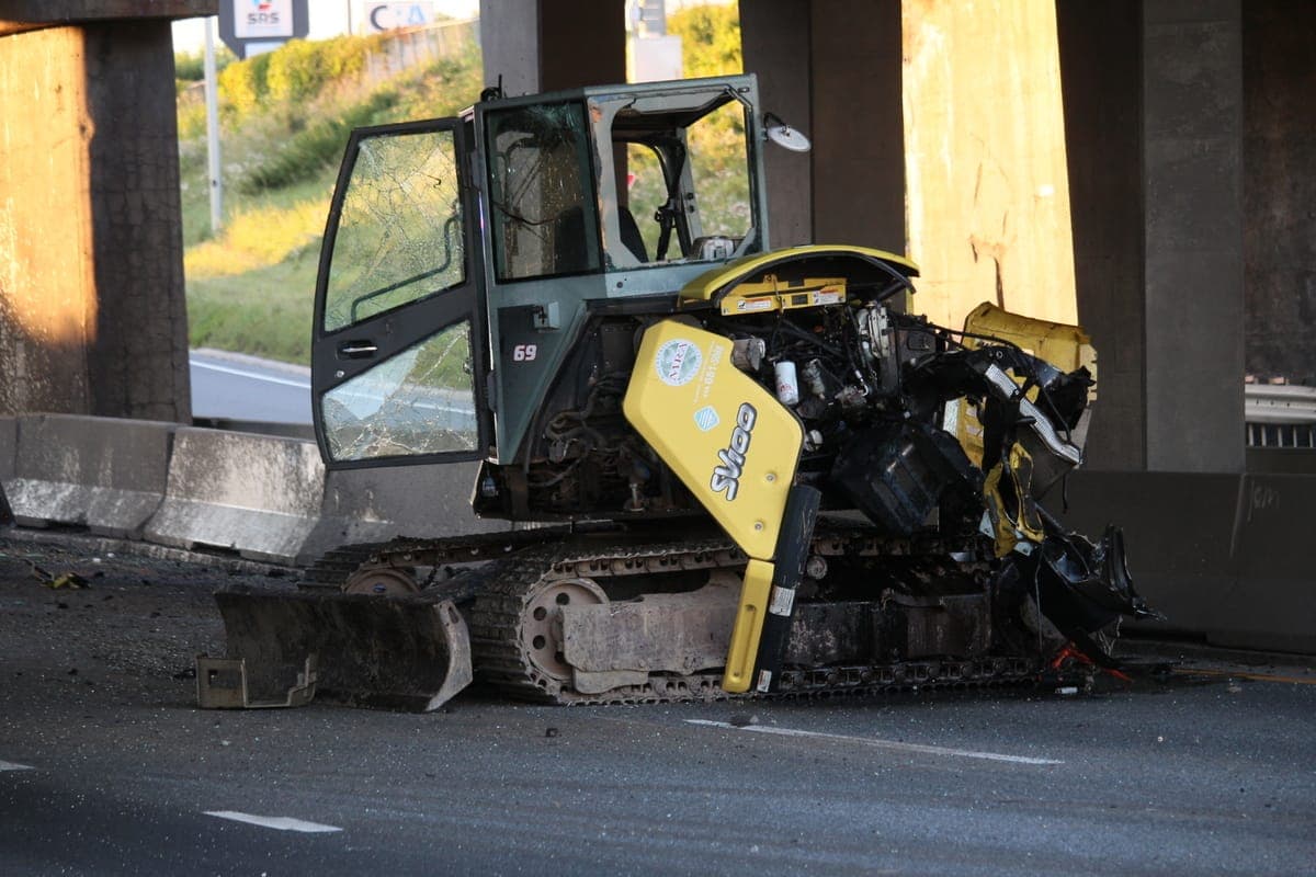 Accident spectaculaire sur l’autoroute Laurentienne: une excavatrice percute un viaduc de plein fouet