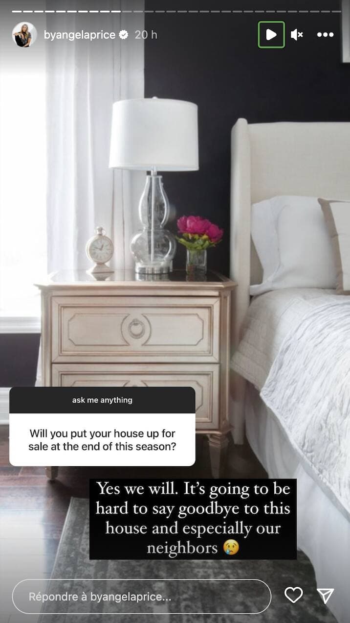 «Oui, nous allons vendre notre maison à la fin de cette saison. Ce sera difficile de dire au revoir à cette maison et surtout à nos voisins», a-t-elle ajouté, en réponse à quelqu'un d'autre.