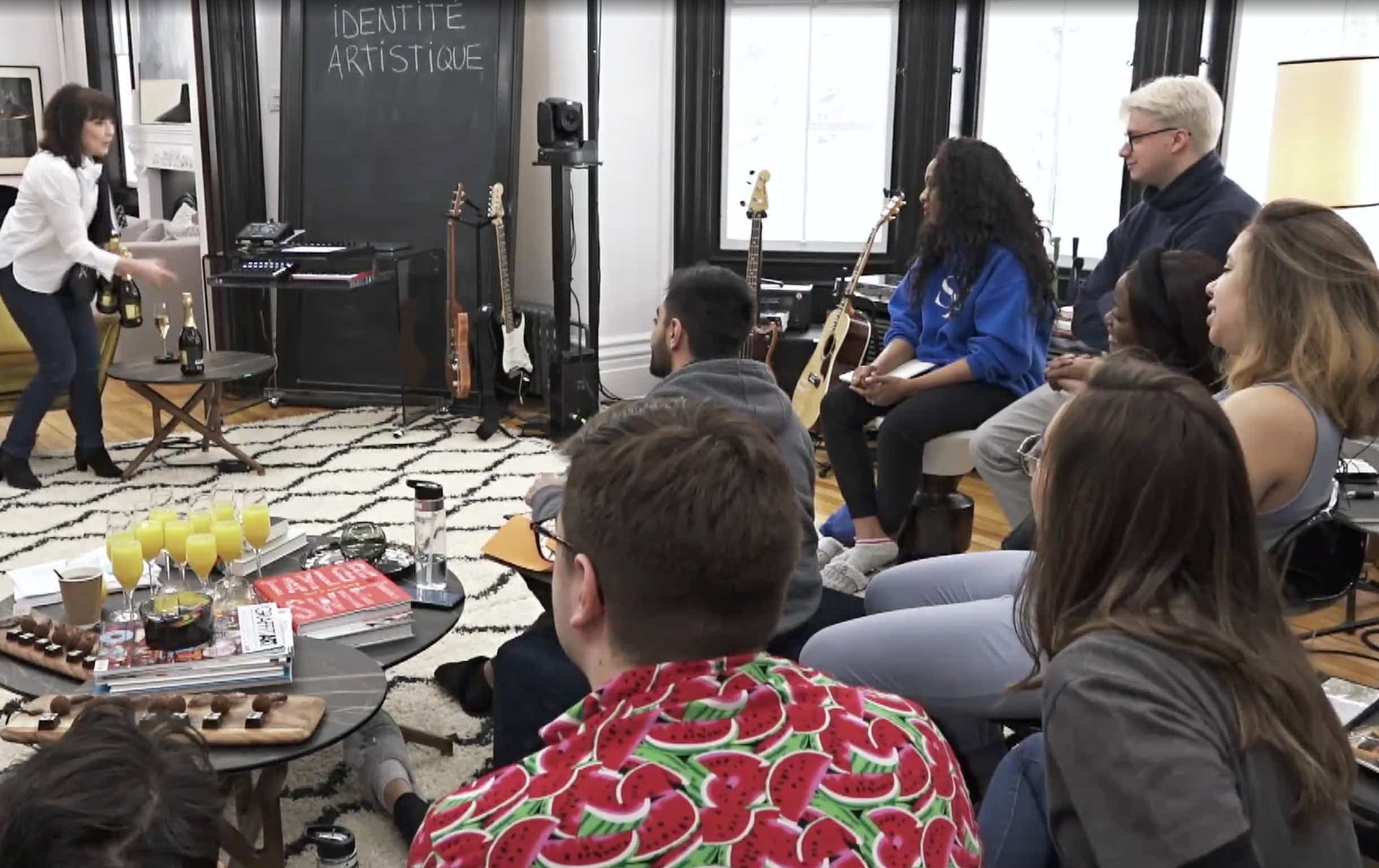 L’actrice et nouvellement professeure venait rencontrer «ses étudiants» pour un cours d’identité artistique et elle leur a déclaré en entrant: «Ouais, je sais, c’est comme ça ma vie», les bouteilles dans les mains.