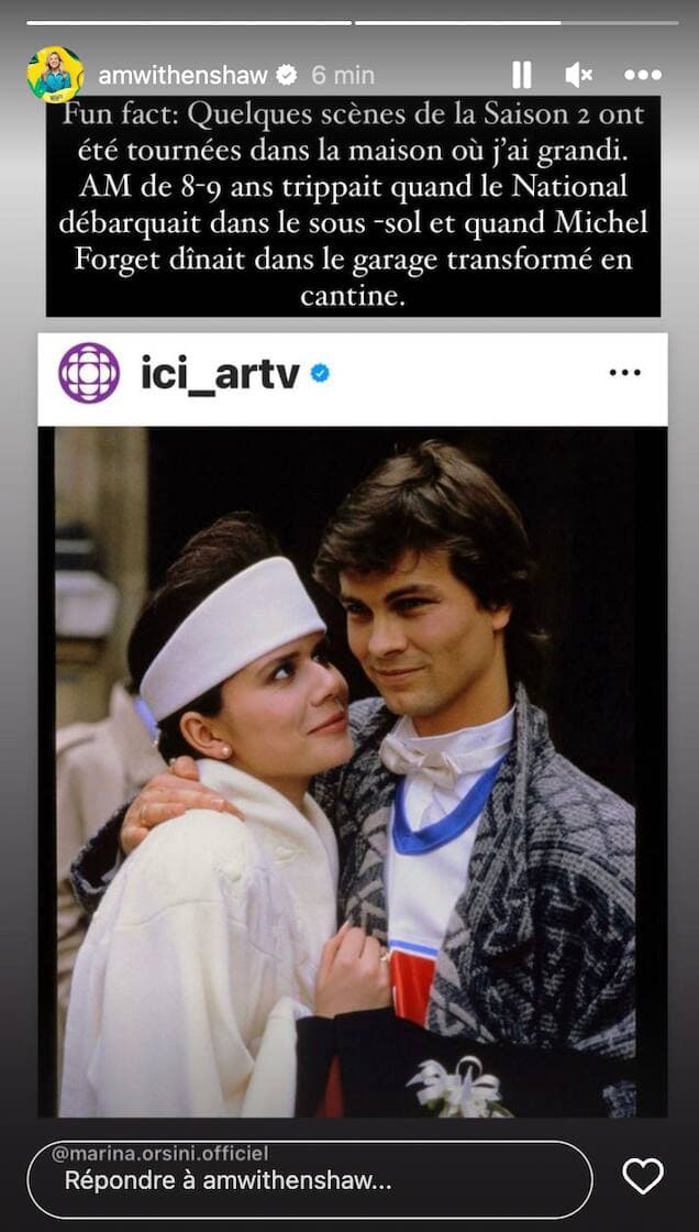 «Fun fact: quelques scènes de la saison 2 ont été tournées dans la maison où j'ai grandi. AM de 8-9 ans trippait quand le National débarquait dans le sous-sol et quand Michel Forget dînait dans le garage transformé en cantine», a-t-elle écrit.