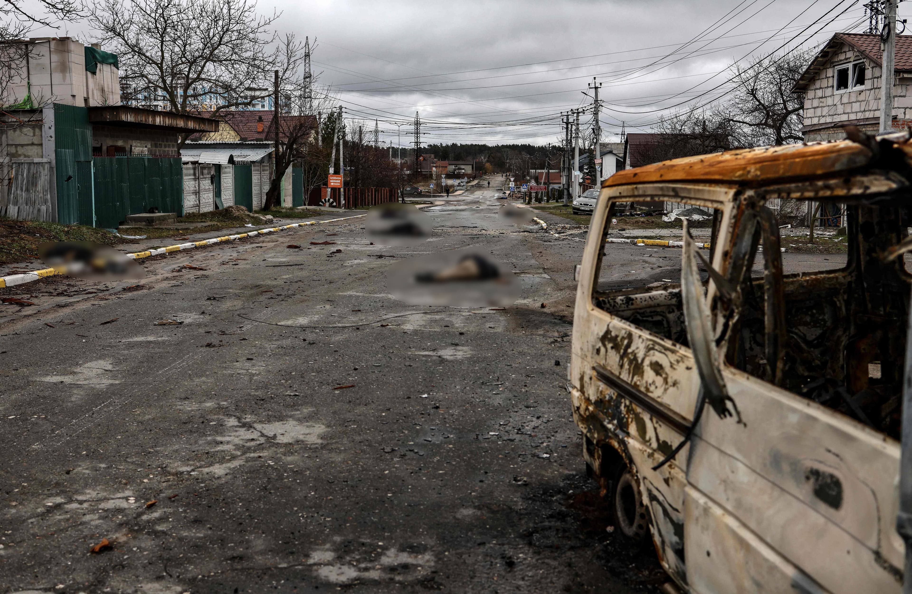 Au moins vingt cadavres alignés dans une rue de Boutcha, ville venant d'être libérée