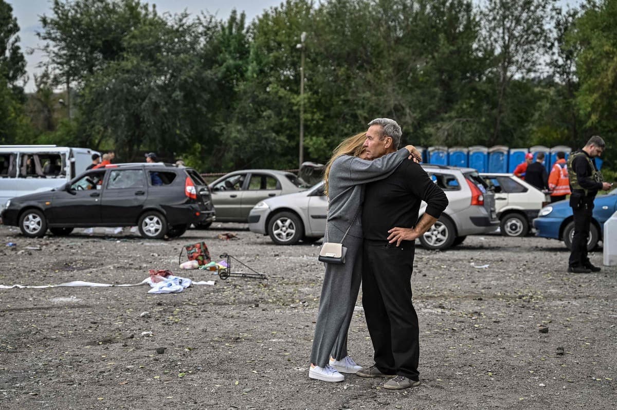 Des centaines de personnes attendaient vendredi matin d’intégrer un convoi leur permettant de retourner dans le sud de l’Ukraine sous contrôle russe. Au moins 25 sont mortes lorsque des frappes ont anéanti les lieux côté ukrainien, laissant un paysage de désolation absolue.