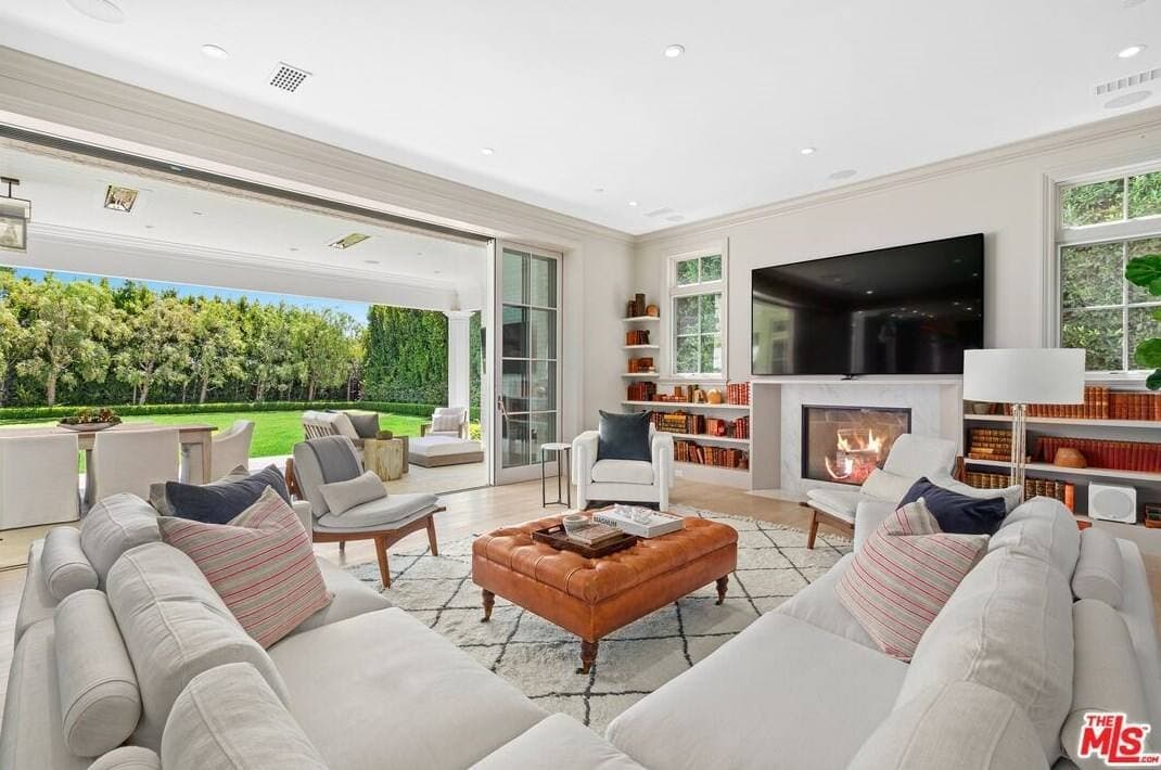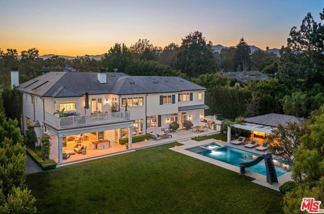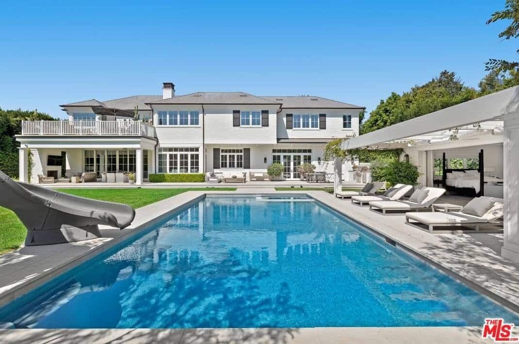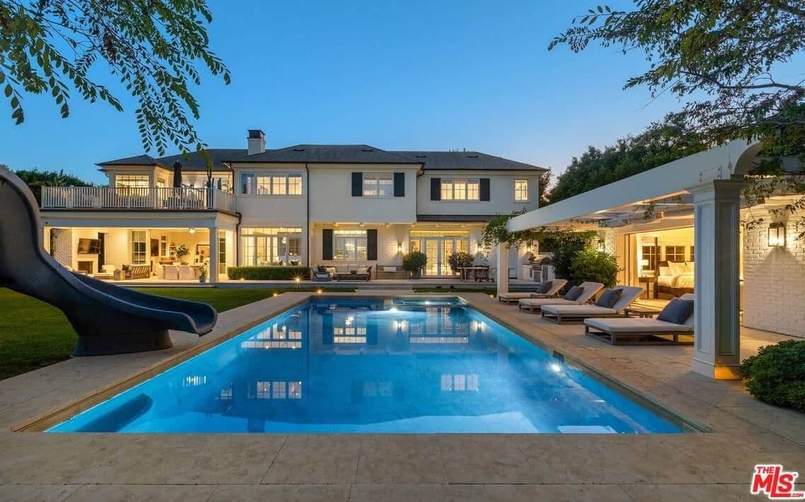 La maison de brique blanche possède également un garage trois places, une piscine munie d’une glissade, un cinéma maison spectaculaire et une salle d’entraînement.