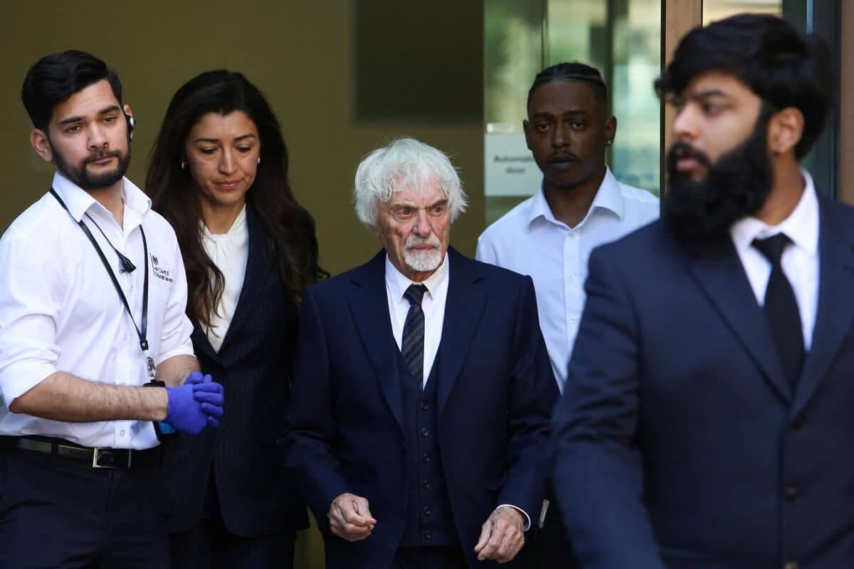 Maintenant âgé de 91 ans, Ecclestone s'est présenté en costume sombre, escorté de ses avocats et de gardes du corps, à la Westminster Magistrates' Court, où il avait été convoqué.