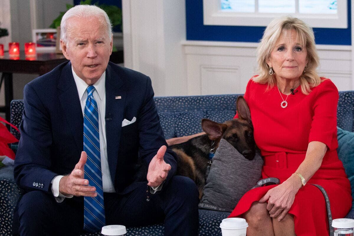 Joe Biden et Jill Biden, accompagnés de leur nouveau compagnon à quatre pattes, un chiot berger allemand portant le nom martial de «Commander», ont aussi participé à un entretien virtuel avec des militaires.
