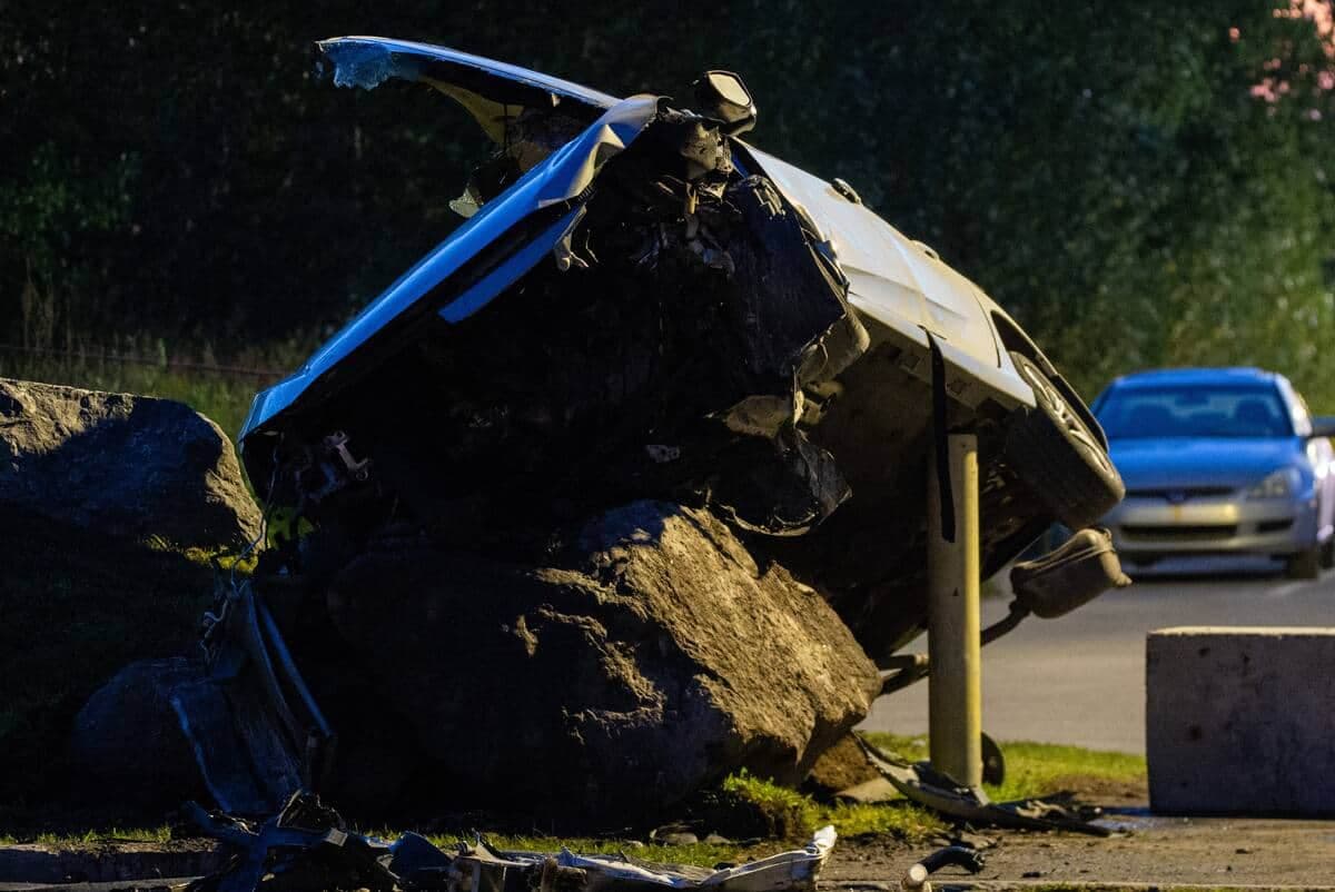 Un fuyard fonce dans un bloc de béton à bord d’une voiture volée