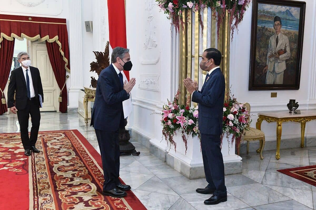 Lors de sa rencontre avec le président indonésien Joko Widodo, le ministre américain a « exprimé son soutien au leadership de l'Indonésie dans l'Indopacifique en tant que troisième plus grande démocratie au monde et promoteur déterminé de l'ordre international fondé sur des règles », selon un communiqué du département d'État américain.