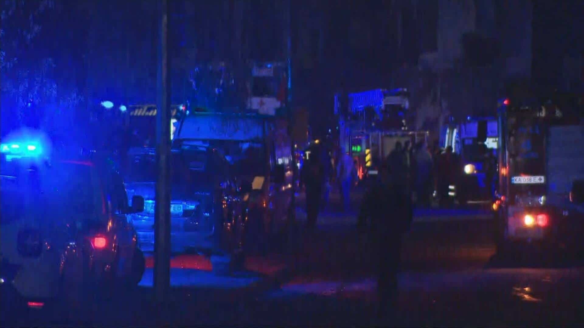 Les journalistes de l'AFP ont vu sur place un étage d'un bâtiment en feu avec de la fumée noire s'échappant des fenêtres brisées, tandis que de nombreux policiers et des secouristes étaient présents.