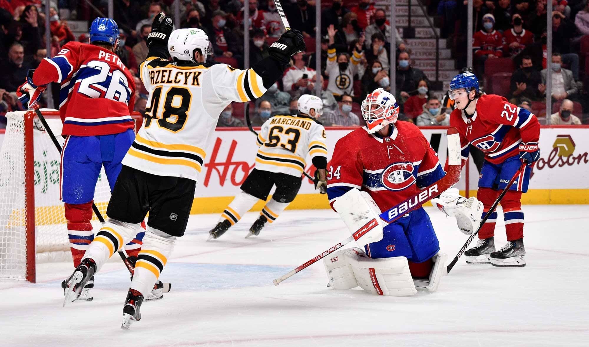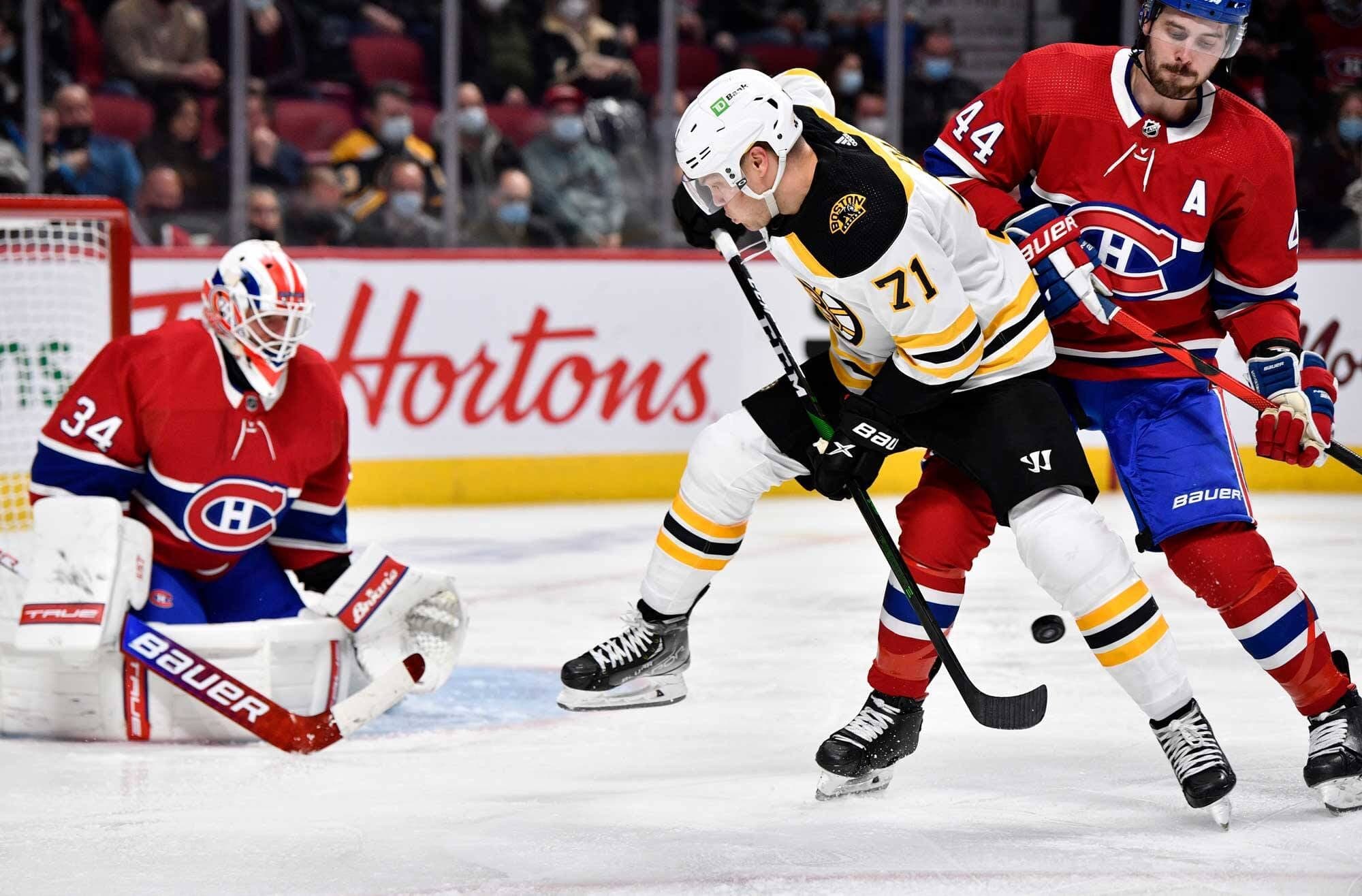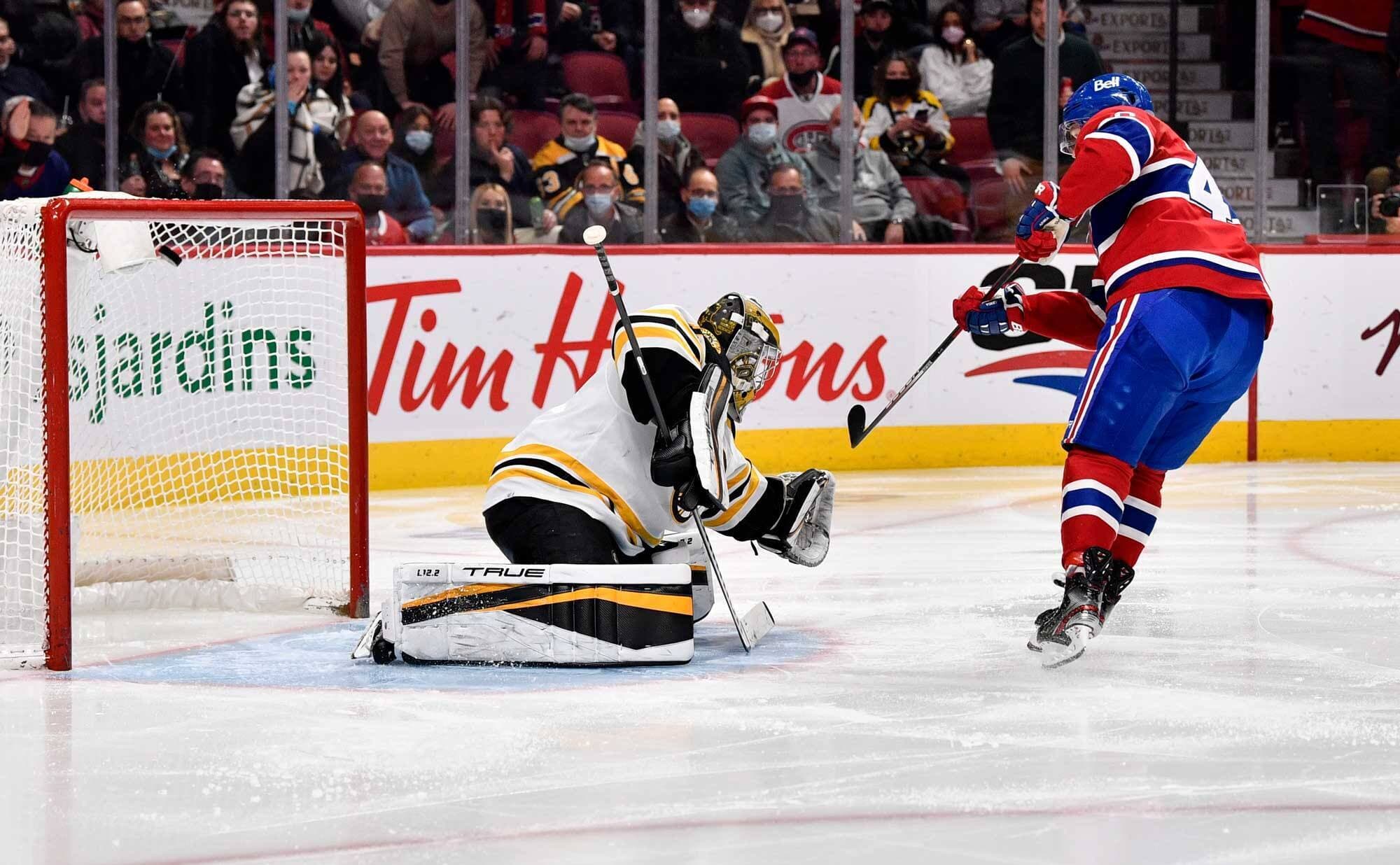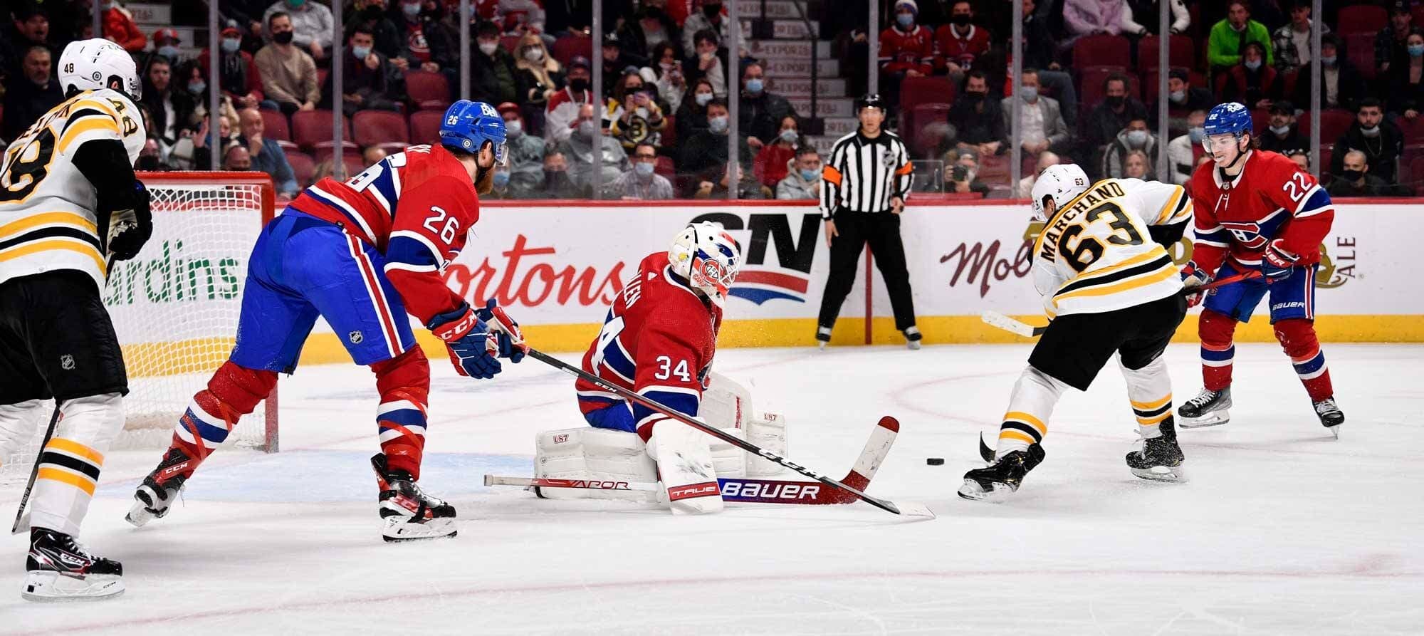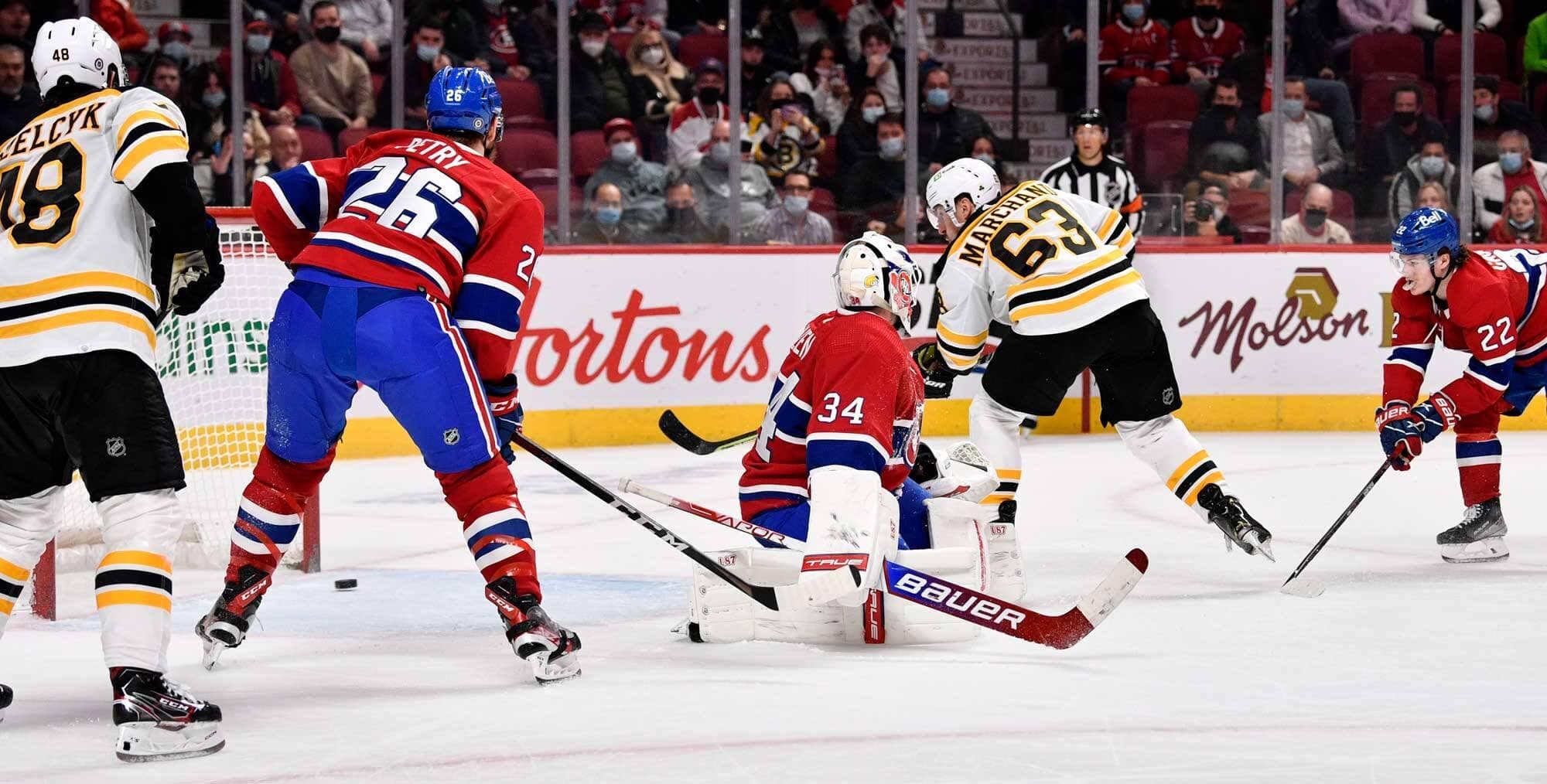 Brad Marchand a marqué son deuxième but du match lors de la période à trois contre trois. Il a déjoué Allen d’une jolie feinte pour inscrire son 27e filet de la saison. Sur ce jeu, Cole Caufield a manqué sa passe en territoire adverse en direction de Nick Suzuki, Jeff Petry s’était déjà trop aventuré en fond de territoire et Suzuki n’a pas patiné avec assez d’ardeur pour revenir dans l’action.