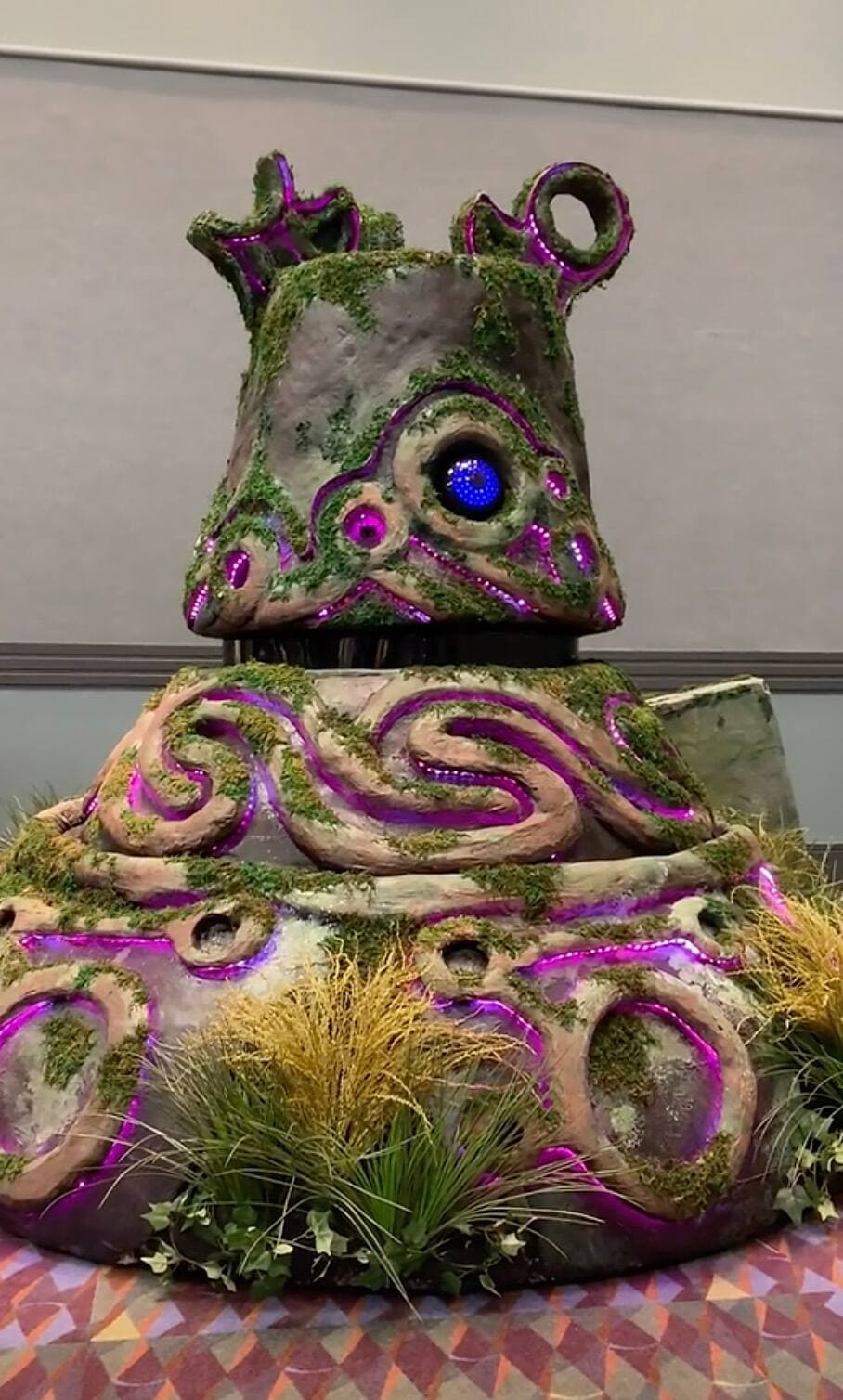 On pourrait croire que l’ensemble est robotisé, mais c’est plutôt la vaillante cosplayeuse qui, assise sur un tabouret à l’intérieur de sa création, fait bouger les différentes sections du gardien. Vous comprendrez par le fait même que, pour accueillir un humain de taille normale, la structure est... imposante.