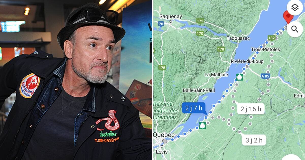 «J’ai un tournage prévu avec mon ami Guy Jodoin pour son show La Belle Tournée au Bic le 14 juillet. Et je n’ai rien à l’horaire à partir du 9 juillet... J’ai jeté un coup d’œil à la carte géographique du Québec et je me suis dit: “Wow, 273 kilomètres seulement, entre Québec et le Bic... Ça doit se faire à pied ça, hein?” Tadam!! Je veux courir de Québec jusqu’au Bic, du 10 au 14 juillet», écrit celui que l’on a tous eu le bonheur de découvrir dans l’émission culte La fin du monde est à 7 heures.