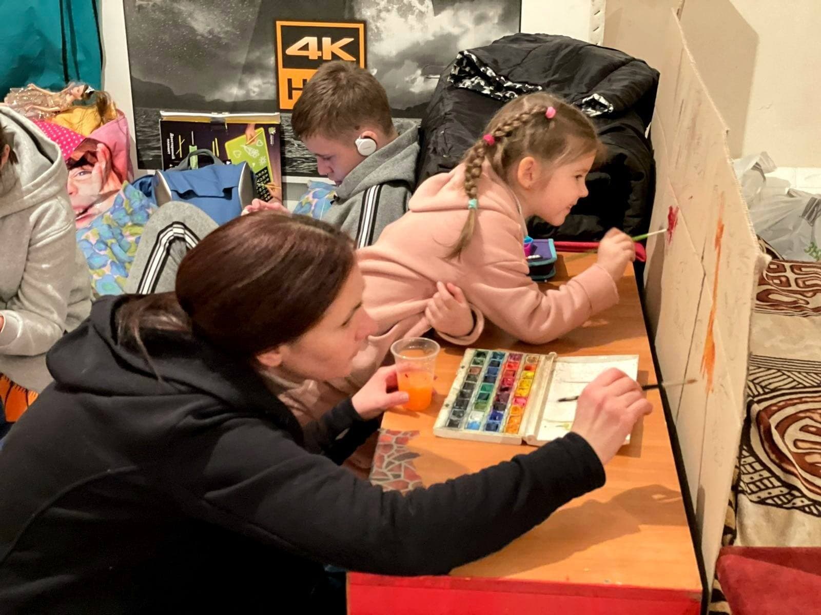 Nous passons beaucoup de temps, surtout la nuit, dans un abri anti-bombes. Nous sommes environ 50 ici, mais, certains jours, nous sommes moins. Lorsque la ville est sous les bombardements, nous sommes bien plus. Il y a beaucoup d’enfants ici. La plupart sont avec leurs parents. Plusieurs sont partis pour fuir la ville, devenant des réfugiés.