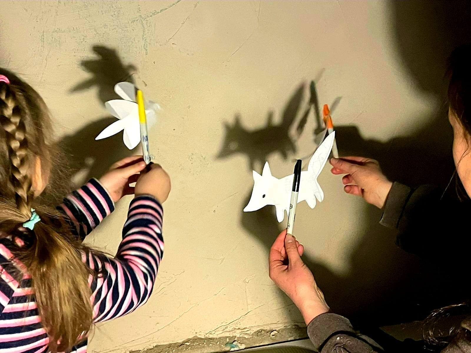Nous essayons de rester à l’intérieur et d’aider nos soldats en fabriquant des filets de camouflage. Avec les enfants, nous peignons, nous dessinons et nous lisons. Nous essayons de les occuper.