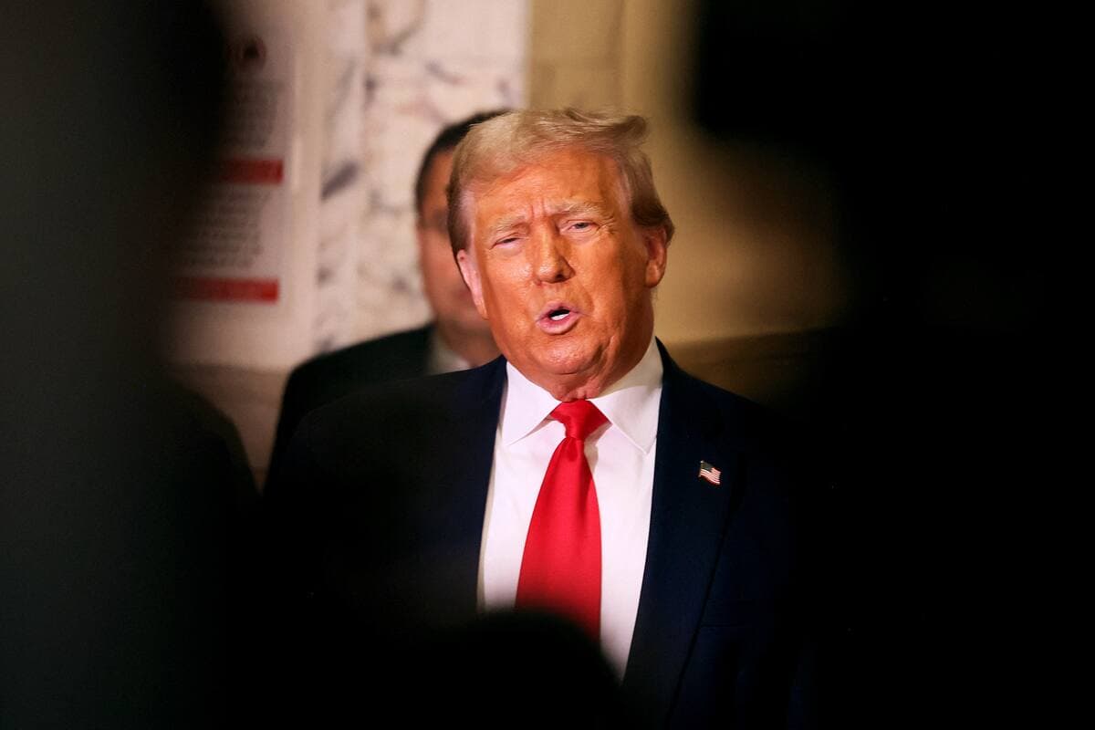 «C'est un procès truqué», a affirmé l'ancien président des États-Unis devant les caméras juste avant d'entrer dans la salle d'audience.